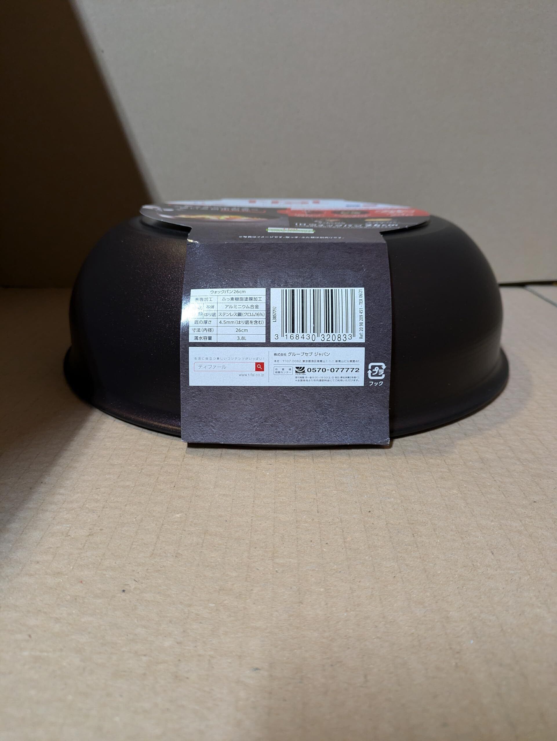 日本正規品は、品質表示・取扱説明書が印刷されたティファールの台紙で梱包されています