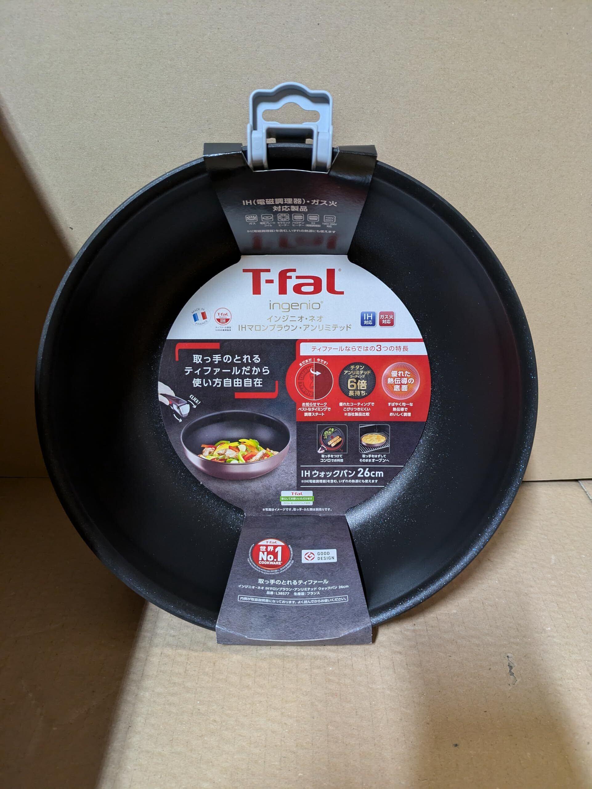 ティファール 取っ手のとれる 炒め鍋 26cm 深型 中華鍋 IH ガス火対応 PFOAなどの有害物質不使用 「インジニオ・ネオ IHマロンブラウン・アンリミテッド ウォックパン」 こびりつきにくさ長持ち ブラウン L38577