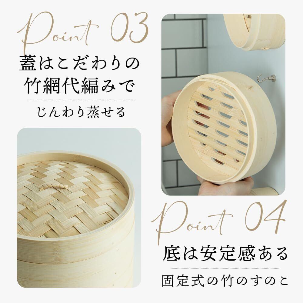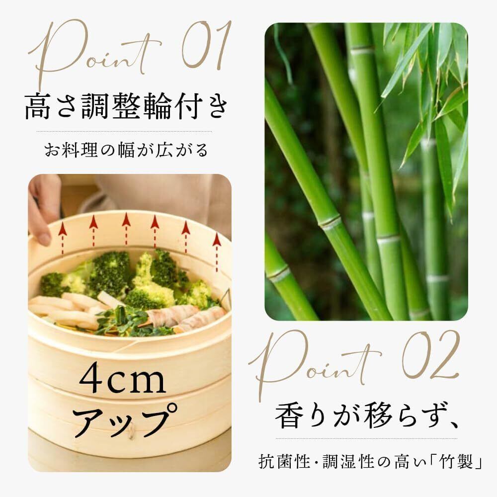 【香りが移らず、抗菌性・調湿製の高い竹製】木の香りが食材に移らないので、食材そのものの味や香りを損ないません。また竹は耐久性が高い上に抗菌性や調湿製にも優れていて、ホクホクの程よい蒸し上がりになります。