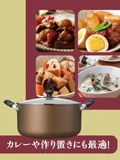 この[Newおおらか鍋 深型両手鍋]は、30cmの深型設計で、ガス・IHの両方に対応した便利な両手鍋です。食材をたっぷり入れられる容量で、煮物やスープ、カレーなど様々な料理を楽しむことができます。家族みんなの食卓を賑やかにする頼れるパートナーです。