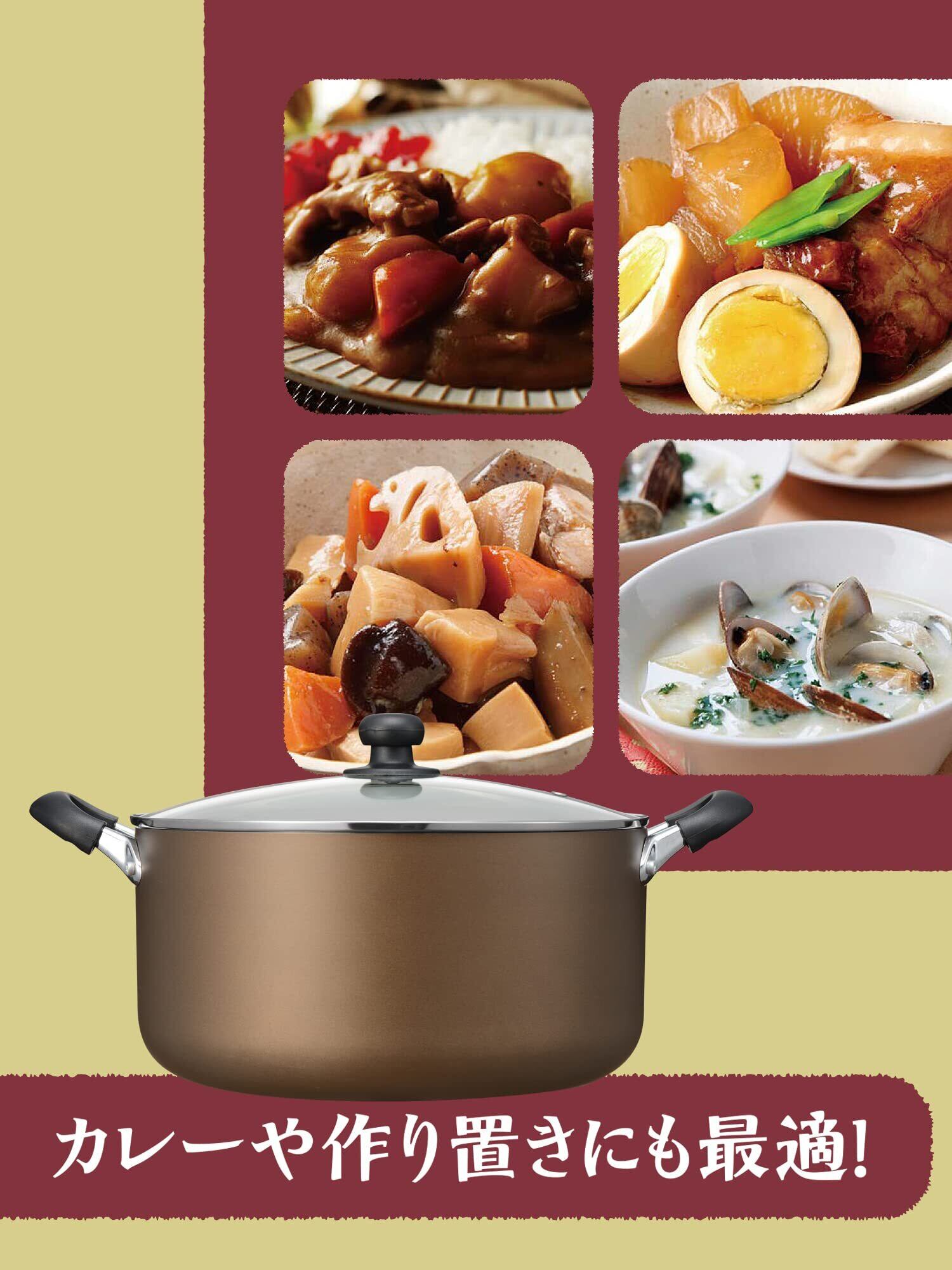 この鍋は、持ちやすい両手ハンドルと安定した底面設計が特徴で、熱い料理も安心して取り扱えます。深型のため、スープや煮込み料理がこぼれにくく、調理中も安心して扱えます。日々の料理を楽にするための工夫が満載です。