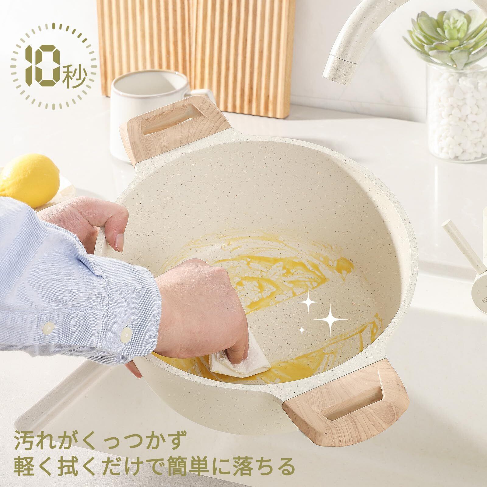 【快適な調理体験】内面がマーブルコートをしているため、焦げ付きにくくスムーズに調理できます。調理後もスポンジで軽く拭くだけで、汚れもスルッと落ちます