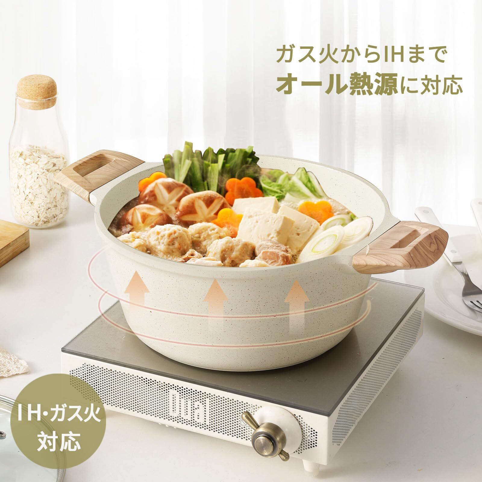 【対応熱源】IH(100V・200V)、 ガスコンロ、 ラジエンヒーター 、エンクローヒーター 、シーズヒーター等オール熱源対応;※電子レンジ&オーブン非対応
