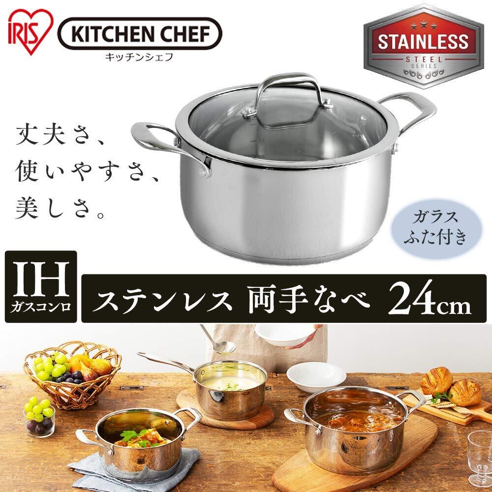 アイリスオーヤマ(IRIS OHYAMA) 両手鍋 24cm ガス火/IH対応 食器洗浄対応 お手入れ簡単 ステンレス/シルバー SP-P24