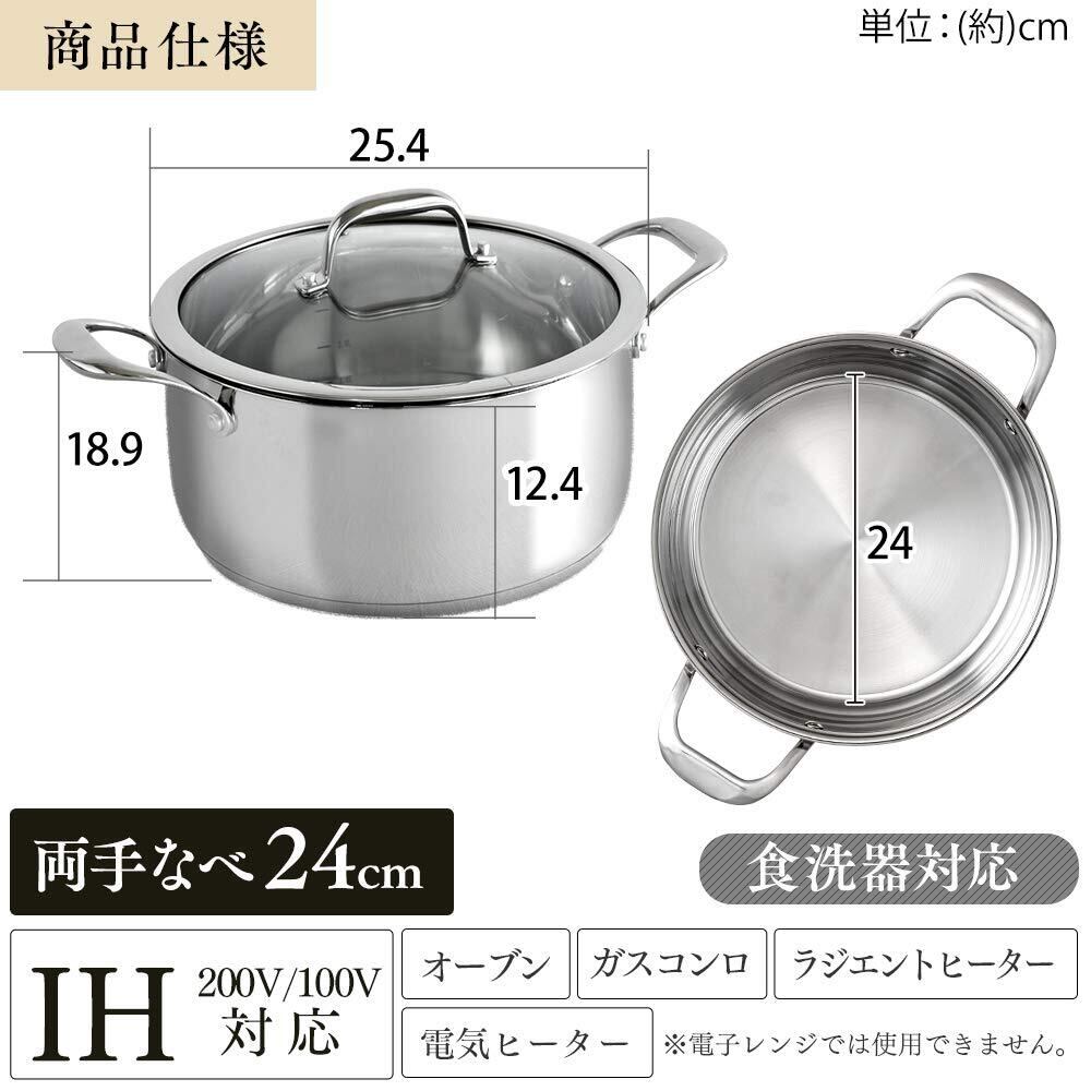 セット内容:両手鍋24cm、ガラスふた24cm