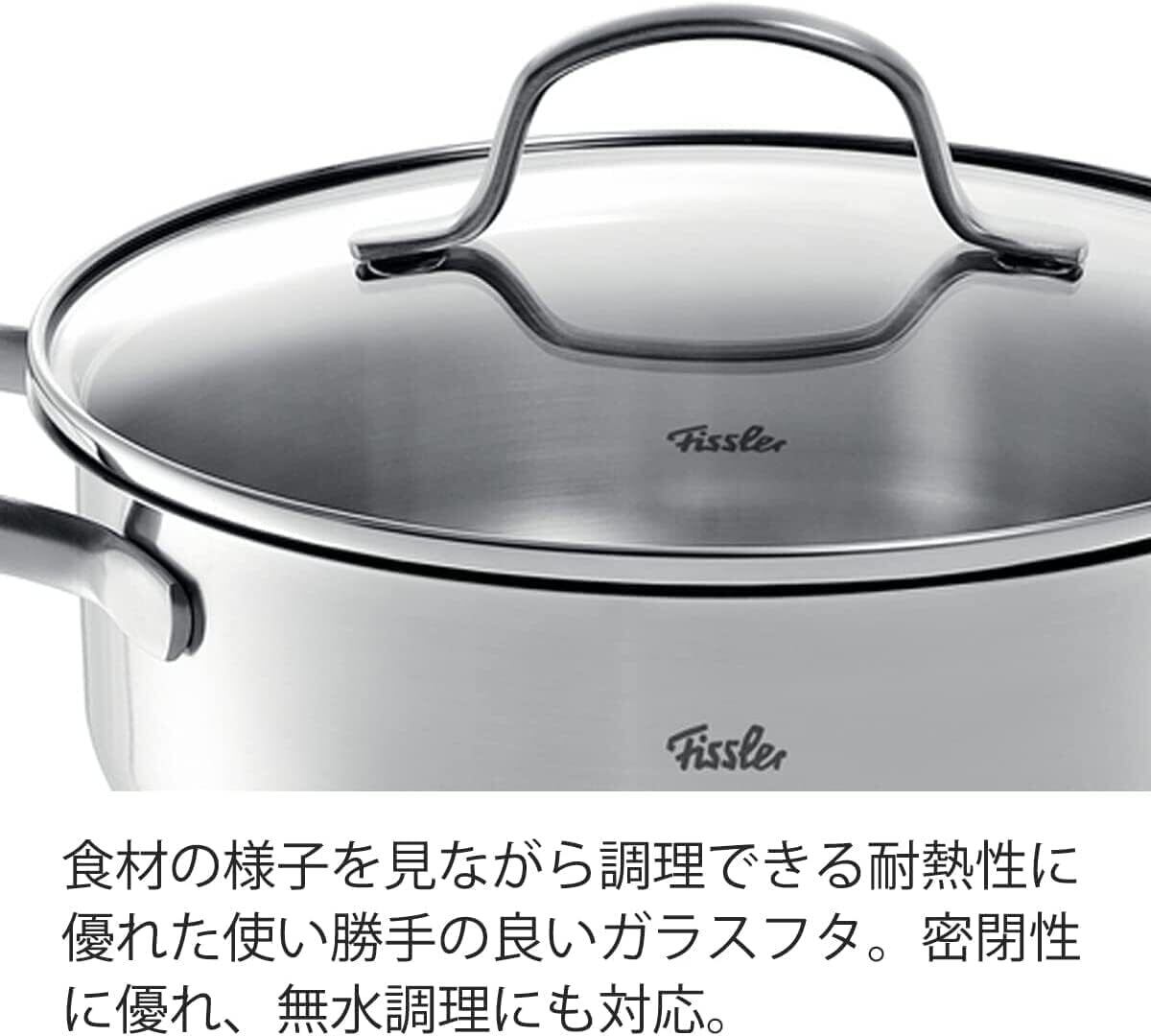 フィスラー (Fissler) 両手鍋 サンフランシスコ (液ダレしないフチ設計 / 24cm / 5.3L) 中身が見えるガラス蓋と便利な目盛り付き (無水調理/IH対応) シルバー 040-113-24-000