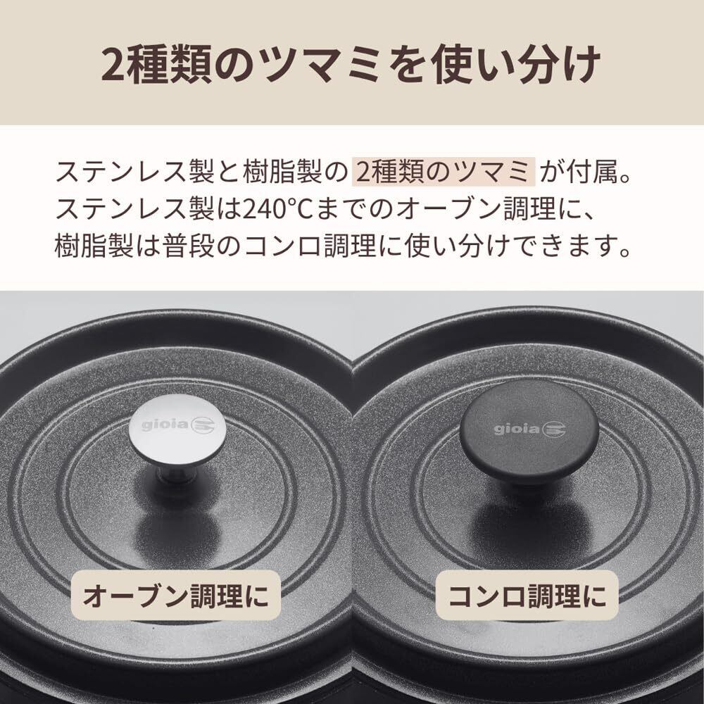 幅広い熱源に対応。ステンレス製のつまみならばオーブン調理も可能