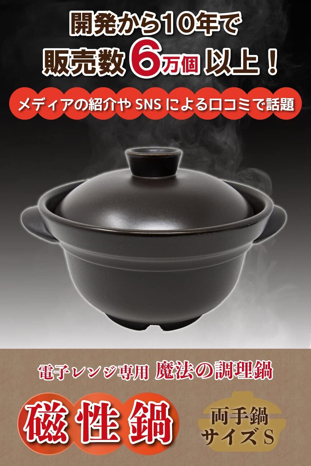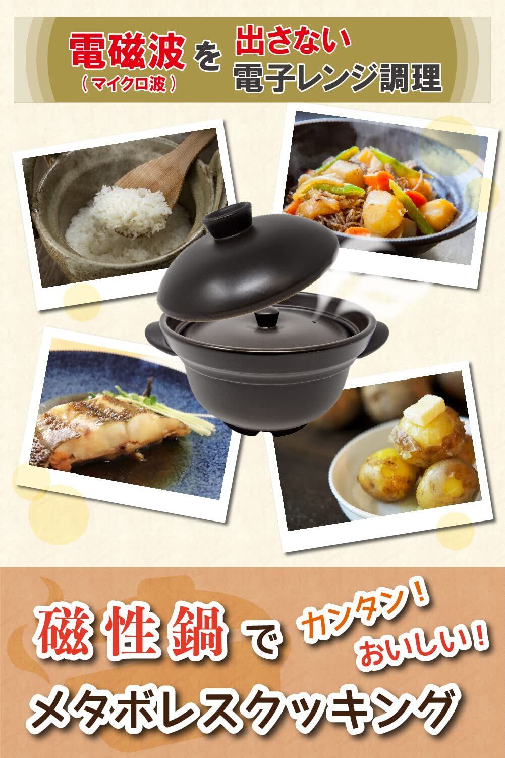 磁性鍋 レンジ用 両手鍋 Sサイズ 800cc 1~2人用 4点1セット(鍋、ふた、中ぶた、スノコ) 電子レンジ 鍋 使いこなしハンドブック 鍋敷き 鍋つかみ 黒おしぼり 電磁波 カット 電磁波対策 遠赤外線 メタボレスクッキング 分子ガストロノミー