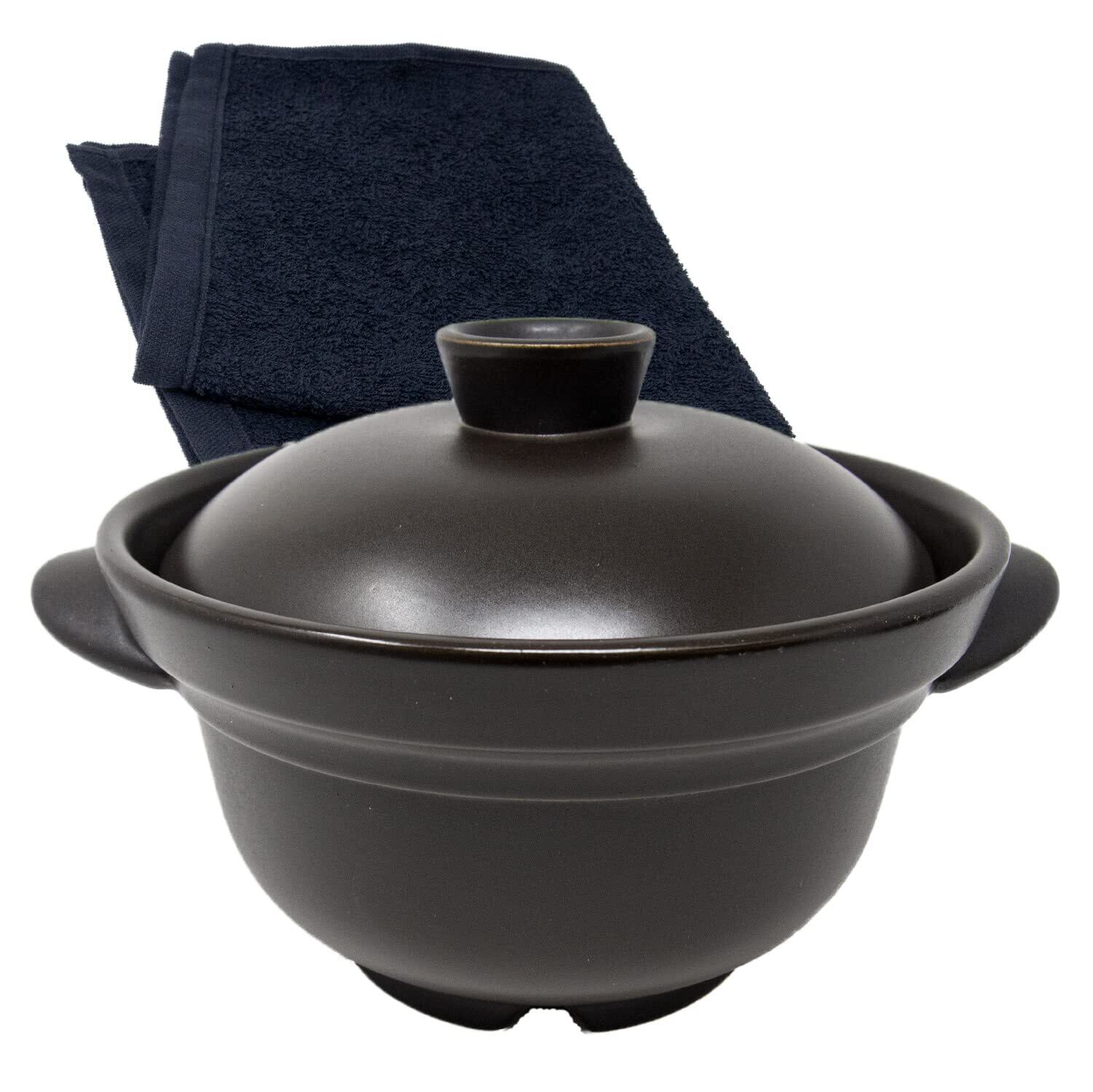 磁性鍋 レンジ用 両手鍋 Sサイズ 800cc 1~2人用 4点1セット(鍋、ふた、中ぶた、スノコ) 電子レンジ 鍋 使いこなしハンドブック 鍋敷き 鍋つかみ 黒おしぼり
