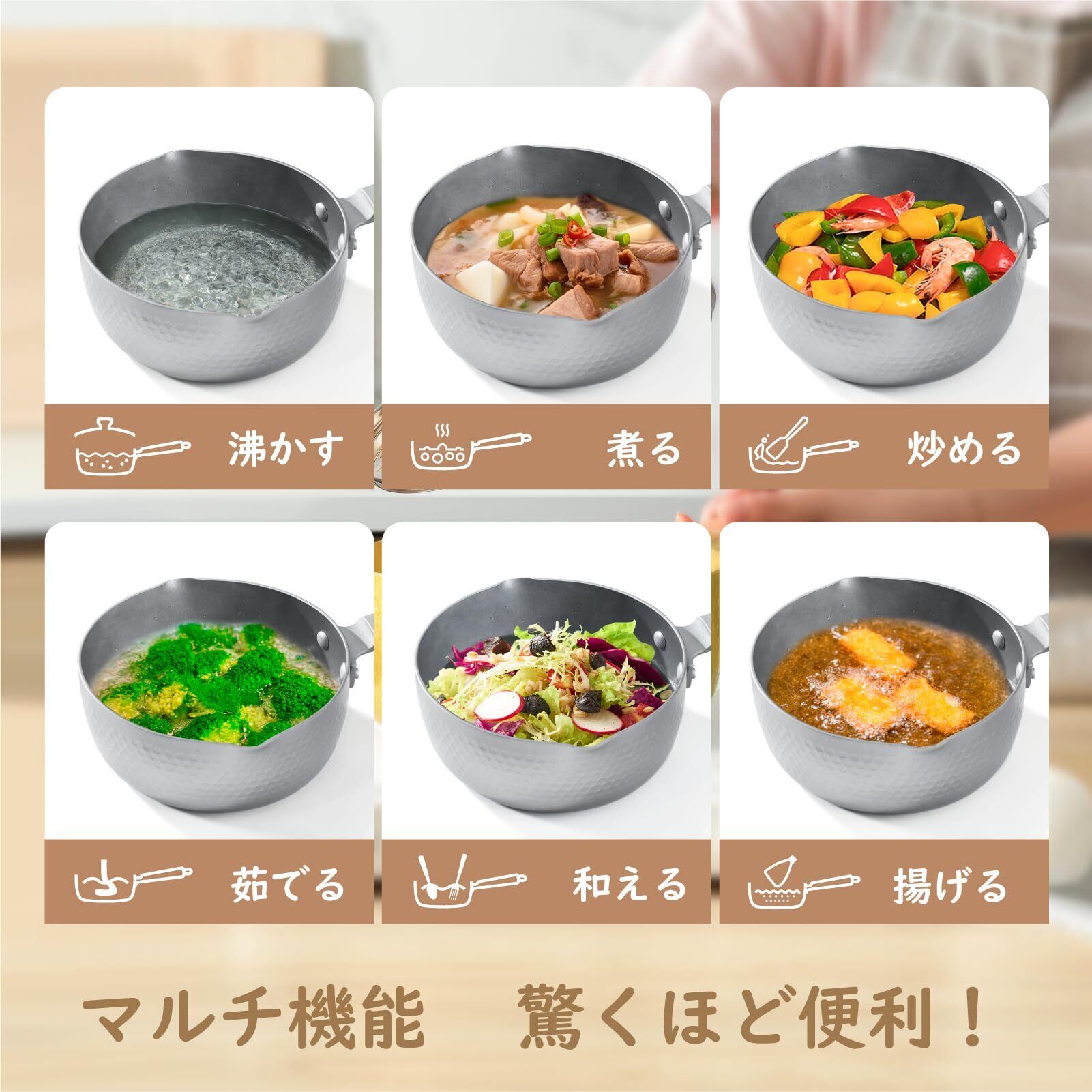 【焦げ付かない・PFOAフリーで安心安全】スイスILAG社コーティングを使用し、お湯、牛乳、インスタントラーメンなど、どんな料理にもこびりつく心配がいらないマルチポット、お手入れも楽。PFOAフリーで、有害物質のAPEO&PFOAなど一切含まれていないので、安心安全の雪平鍋。