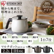 この[アイリスオーヤマ マルチポット MCP-14]は、約2.2Lの容量を持ち、鍋、ミルクパン、やかん、ポット、揚げ物など、さまざまな料理に対応します。特に、IH対応なので、多くの家庭で活用できる優れたアイテムです!
