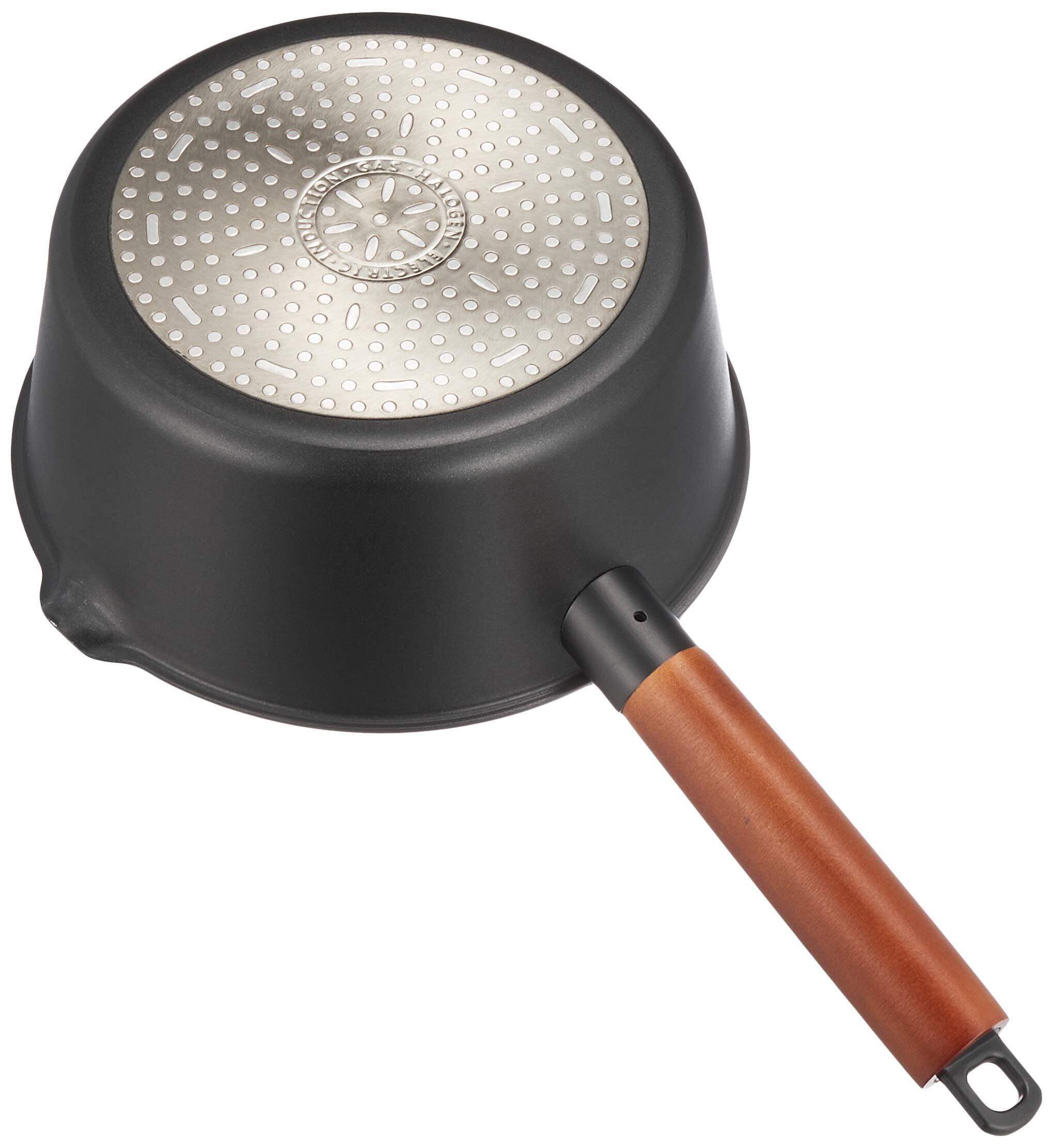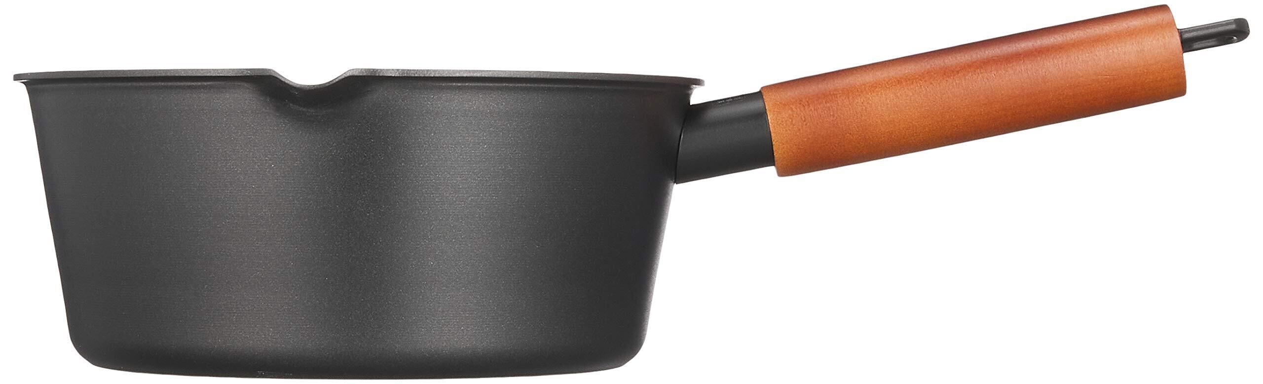 本体:アルミニウム合金、内面:ふっ素樹脂加工、外面:焼付塗装、はり底:ステンレス鋼、ハンドル:天然木