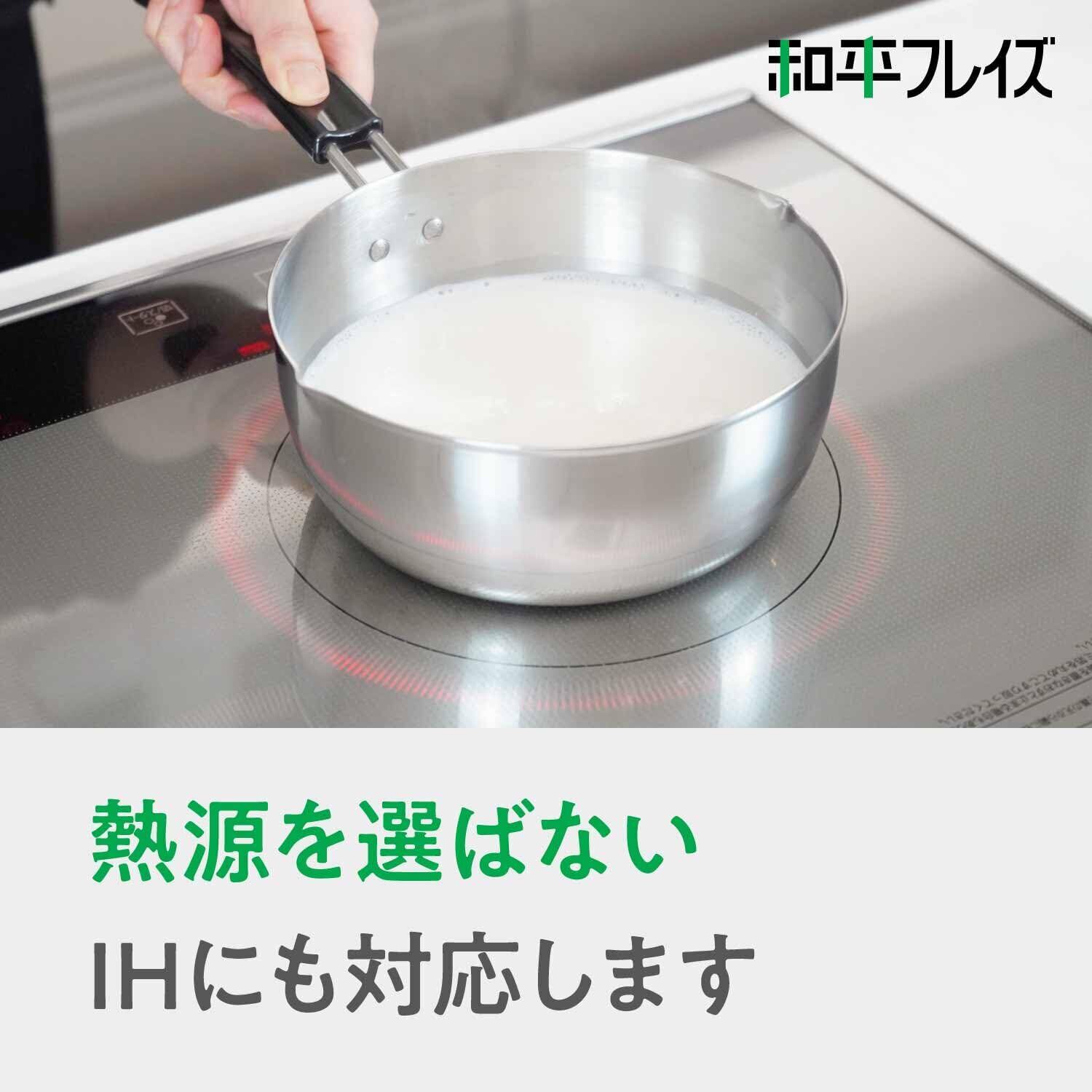 IHにも対応する、ステンレス製の雪平鍋。煮物・茹で物など便利に使えます。