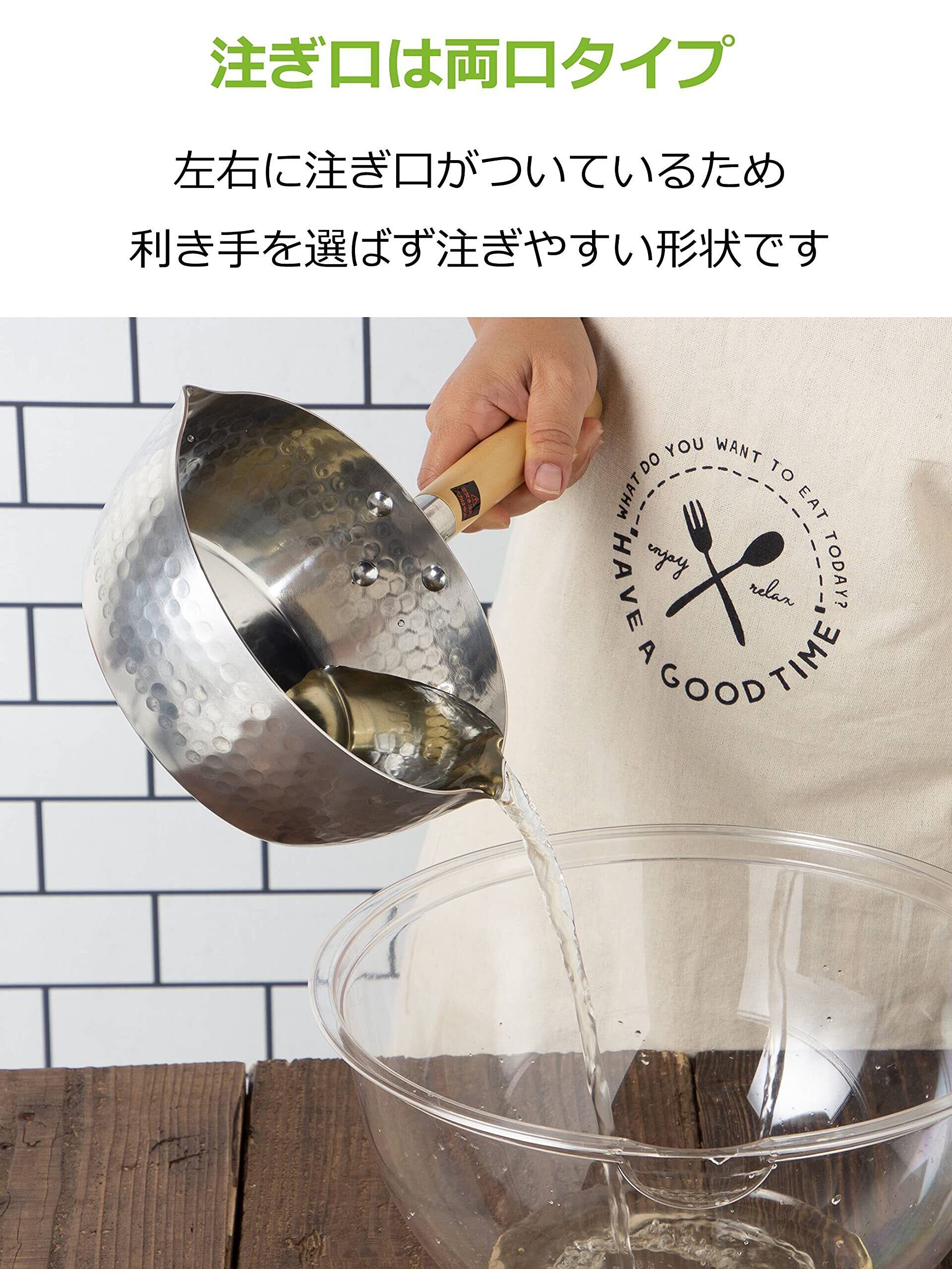 注ぎ口が設計されているため、お湯やスープをスムーズに注ぎ入れることができます。液だれの心配も少なく、調理中でも安心です。この機能的なデザインが、シンプルながらも便利な使い勝手を実現しています。