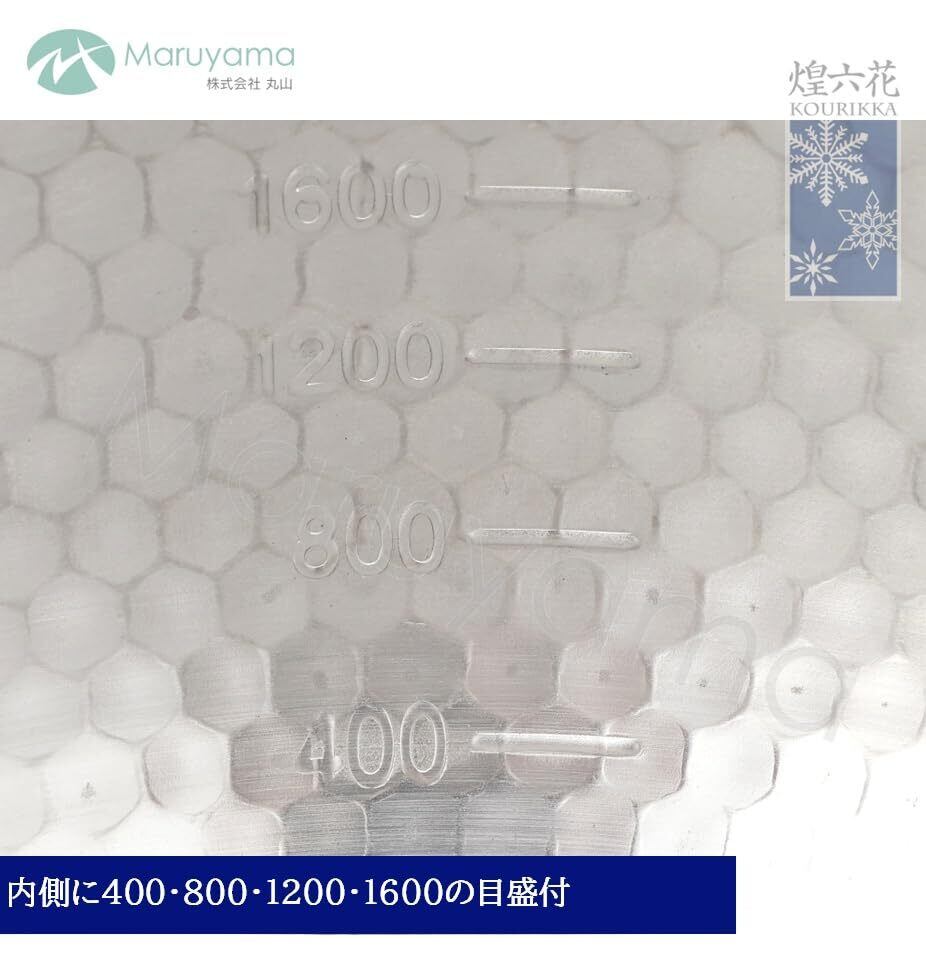 丸山技研 煌六花 KOURIKKA ステンレス 雪平鍋 20cm 2.4L フック付 注ぎ口付 目盛付 KRY-733 IH対応 ガスコンロ対応 日本製 燕三条