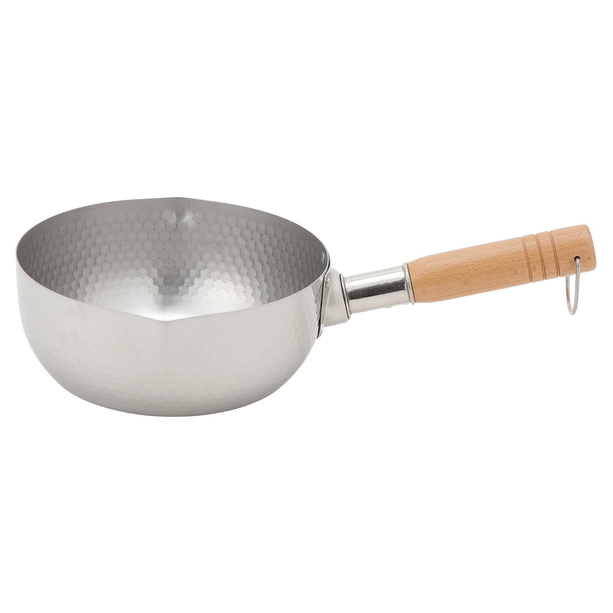 ・雪深い越後人が生み出した技で造り上げた雪平鍋 ・天然木で安定感のある持ちやすい取って ・槌目仕上げ・フック付・注ぎ口付・目盛付