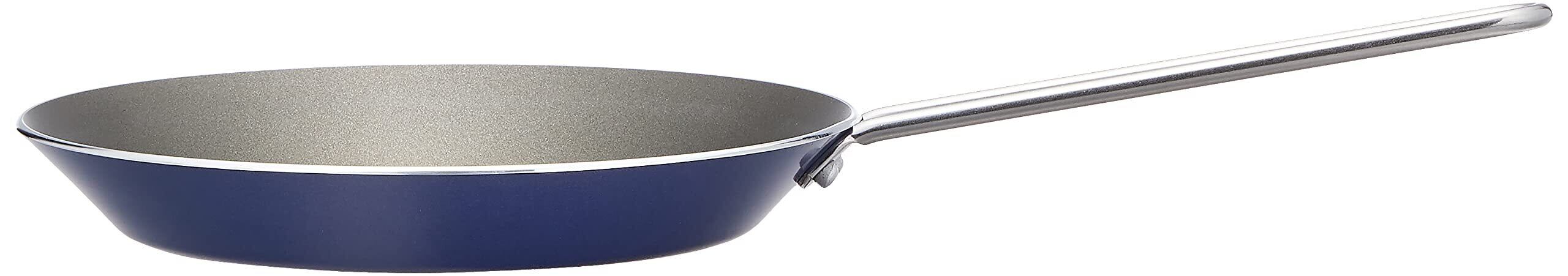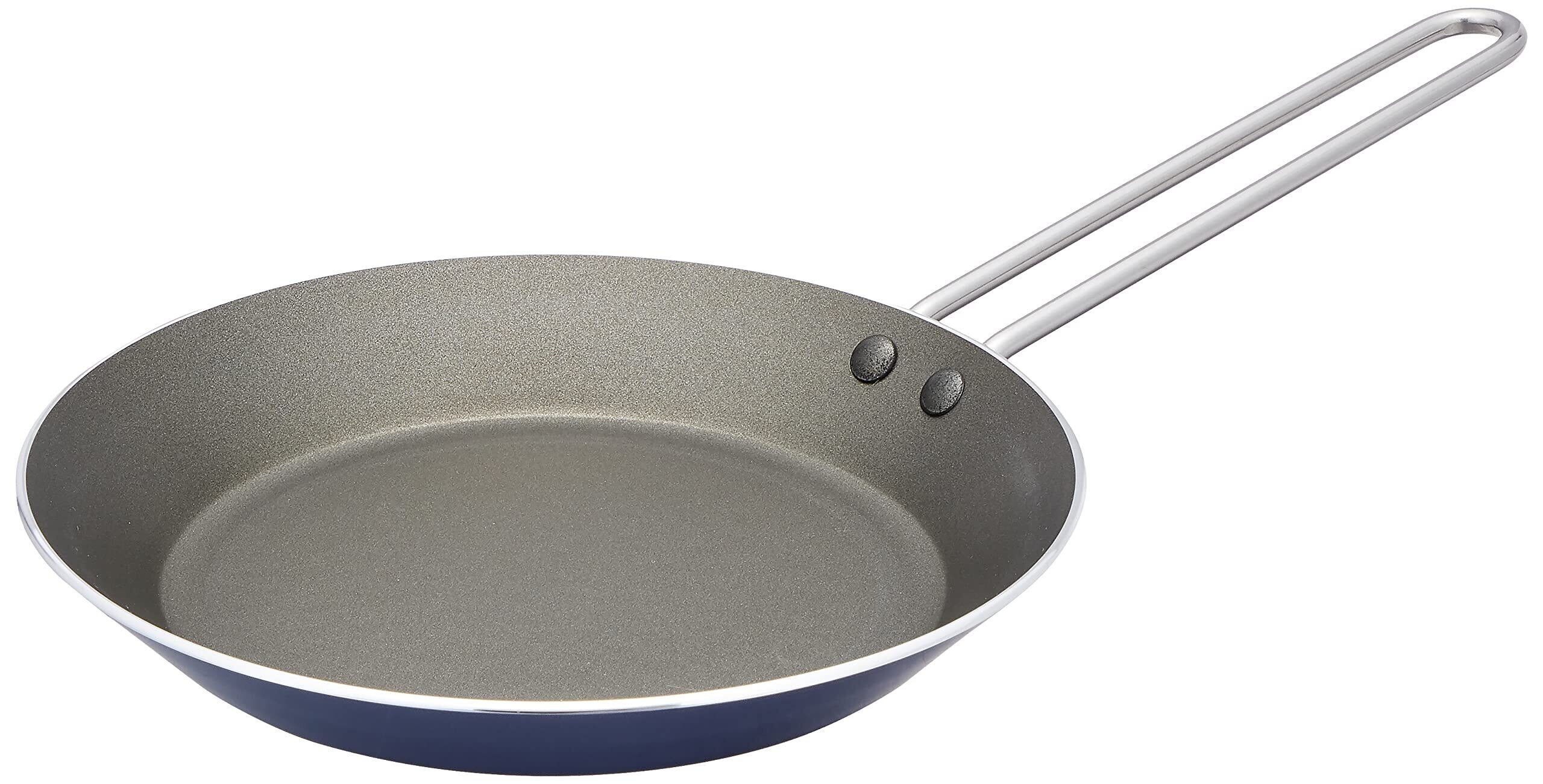 ●油なじみが良くコゲつきにくいフッ素樹脂加工を施し後片付けもラクラク。アルミ厚板2.6mmを使用しているので、熱ムラが少なく変形しにくいので長く使える。モダンなキッチンに似合うクールなブルーメタリック
