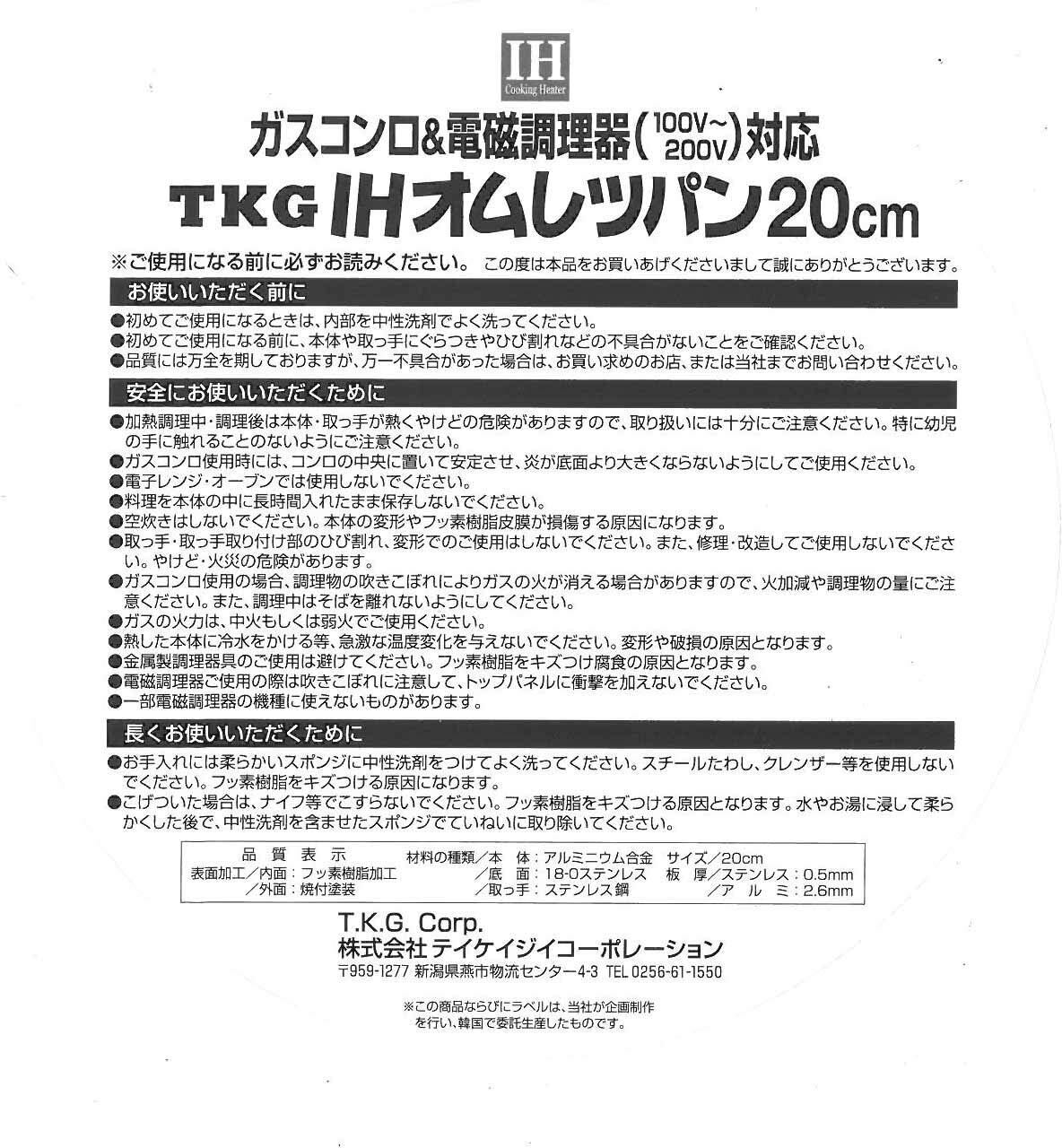 遠藤商事(Endo Shoji) TKG オムレツパン 20cm アルミ IH・ガス火対応 フッ素加工でくっつきにくい 錆びにくいステンレスハンドル使用 業務用 AHLQ320