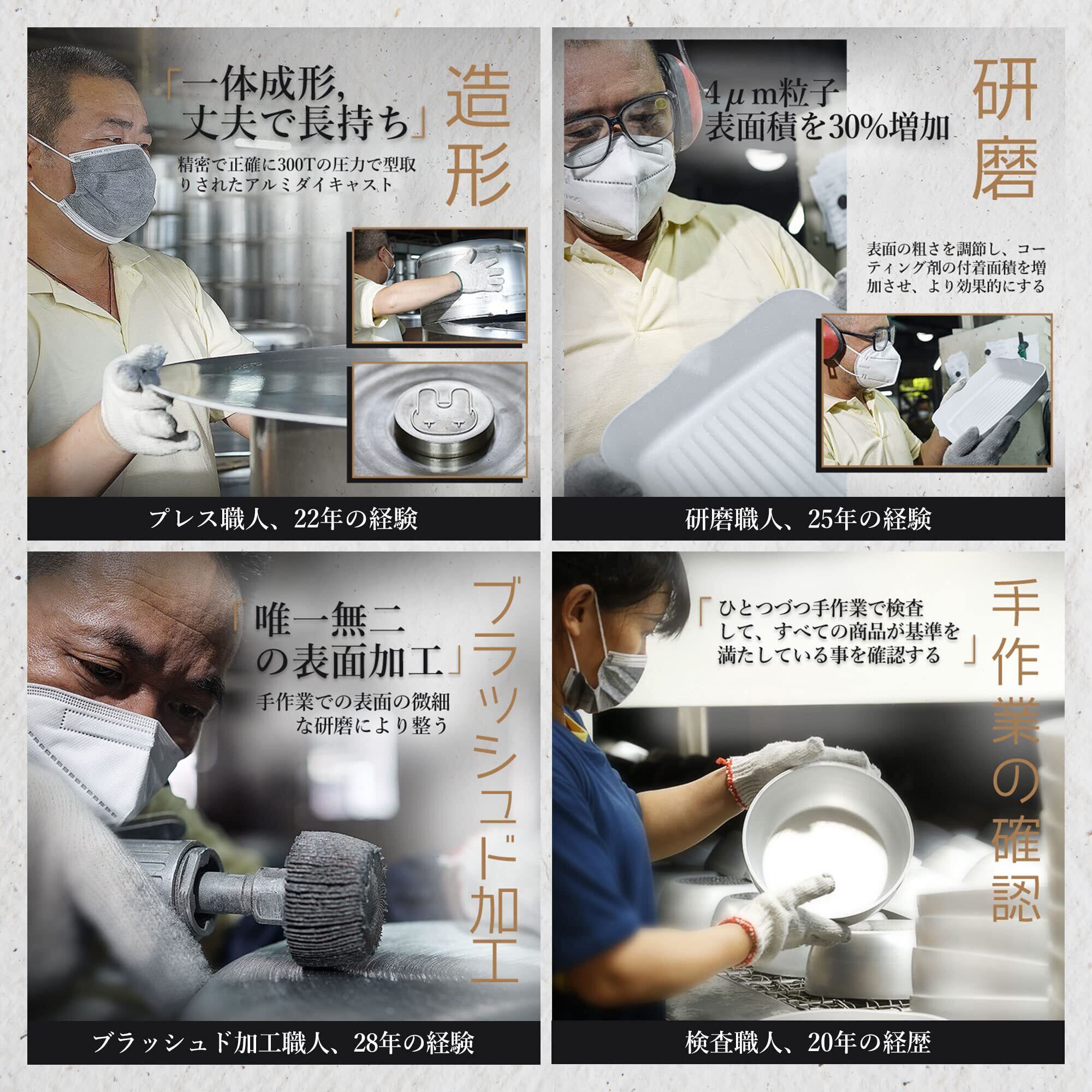 安心 最高調理温度は260℃、中火以下での使用をおすすめします。※急激な加熱はお避けてください。食品安全認証付きで、安心してご利用いただけます。他のご質問については、カスタマーサポートまでお気軽にご連絡ください。24時間内に速やかに対応致します。✨【サイズ】31×16×7cm