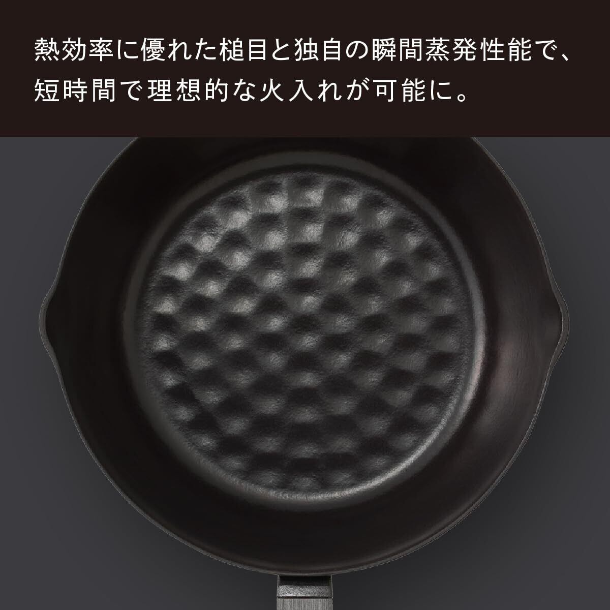 極限まで薄肉化した鋳物に、槌目模様を再現。蓄熱性の高い鋳物と、熱効率に優れた槌目により、短時間で理想的火入れが可能になりました。日々の手料理が短時間でさらに美味しく仕上がります。