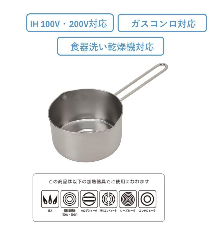 オールステンレス製のミルクパンです。IHクッキングヒーター対応、ガスコンロ対応、食洗機対応(※ガラス蓋は非対応)。