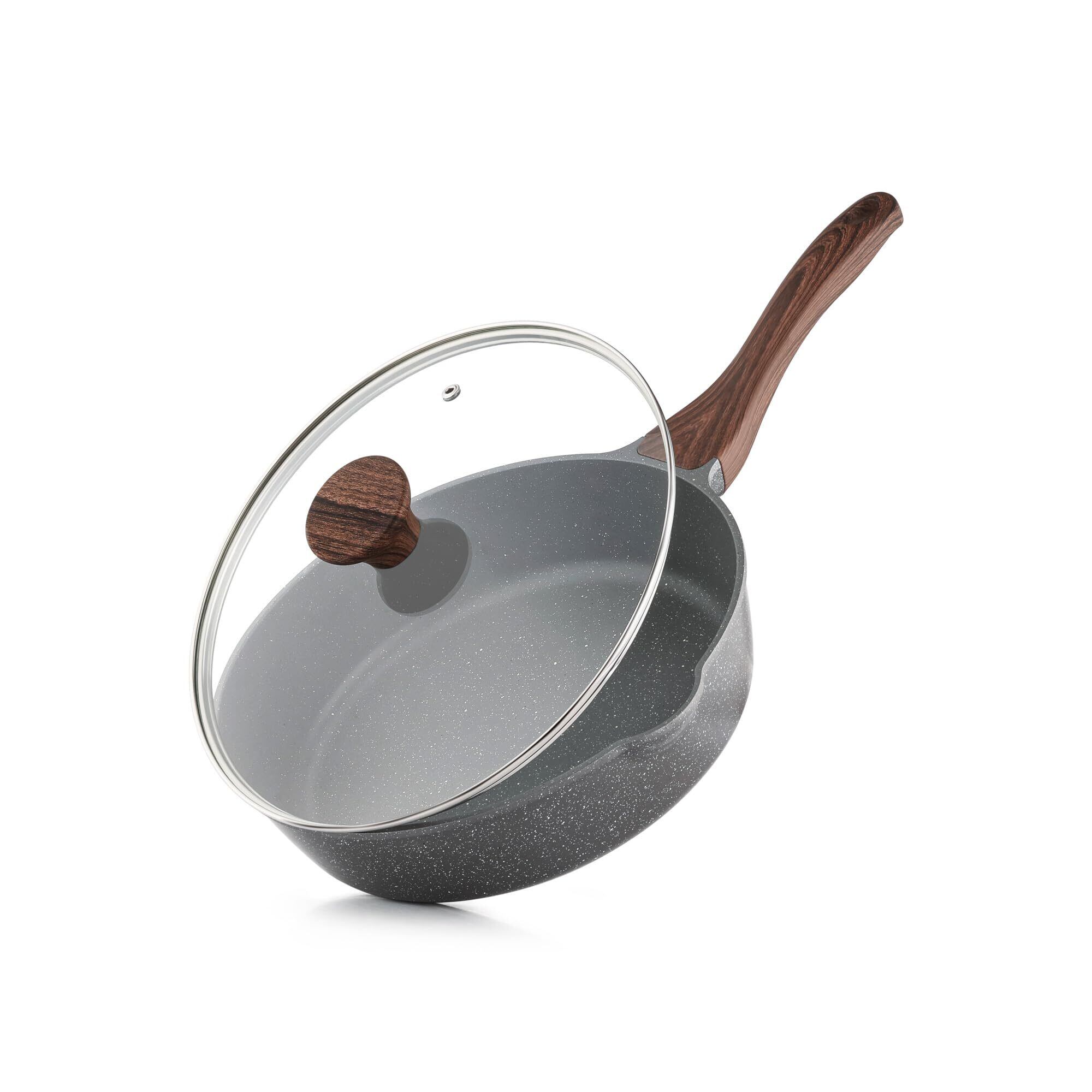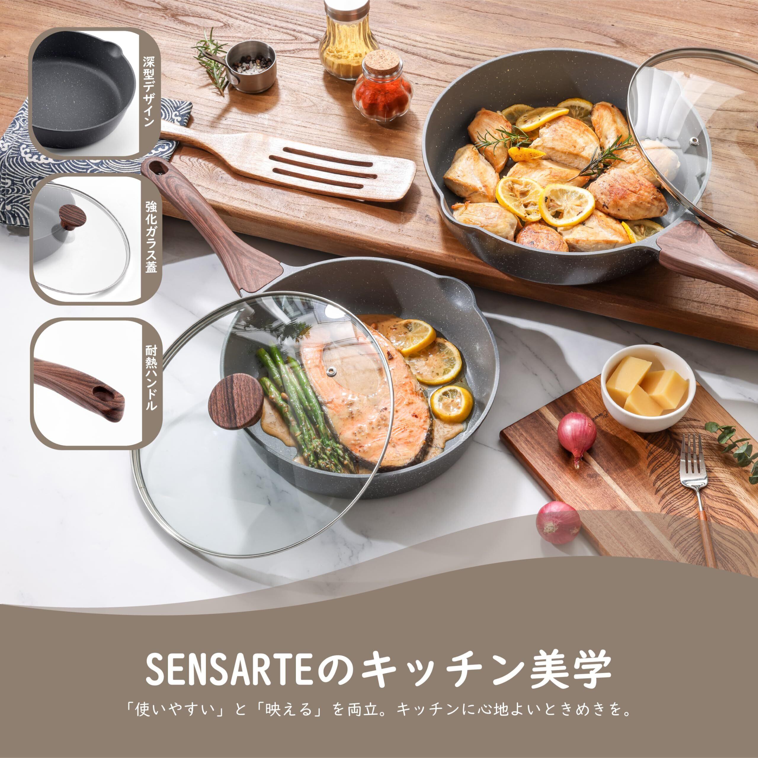 SENSARTE 深型フライパン 26cm 蓋付き マーブルコート IH/ガス火対応 炒め鍋 焦げ付きにくい お手入れ簡単 中華鍋 こびりつきにくい 高熱効率 一年 グレー