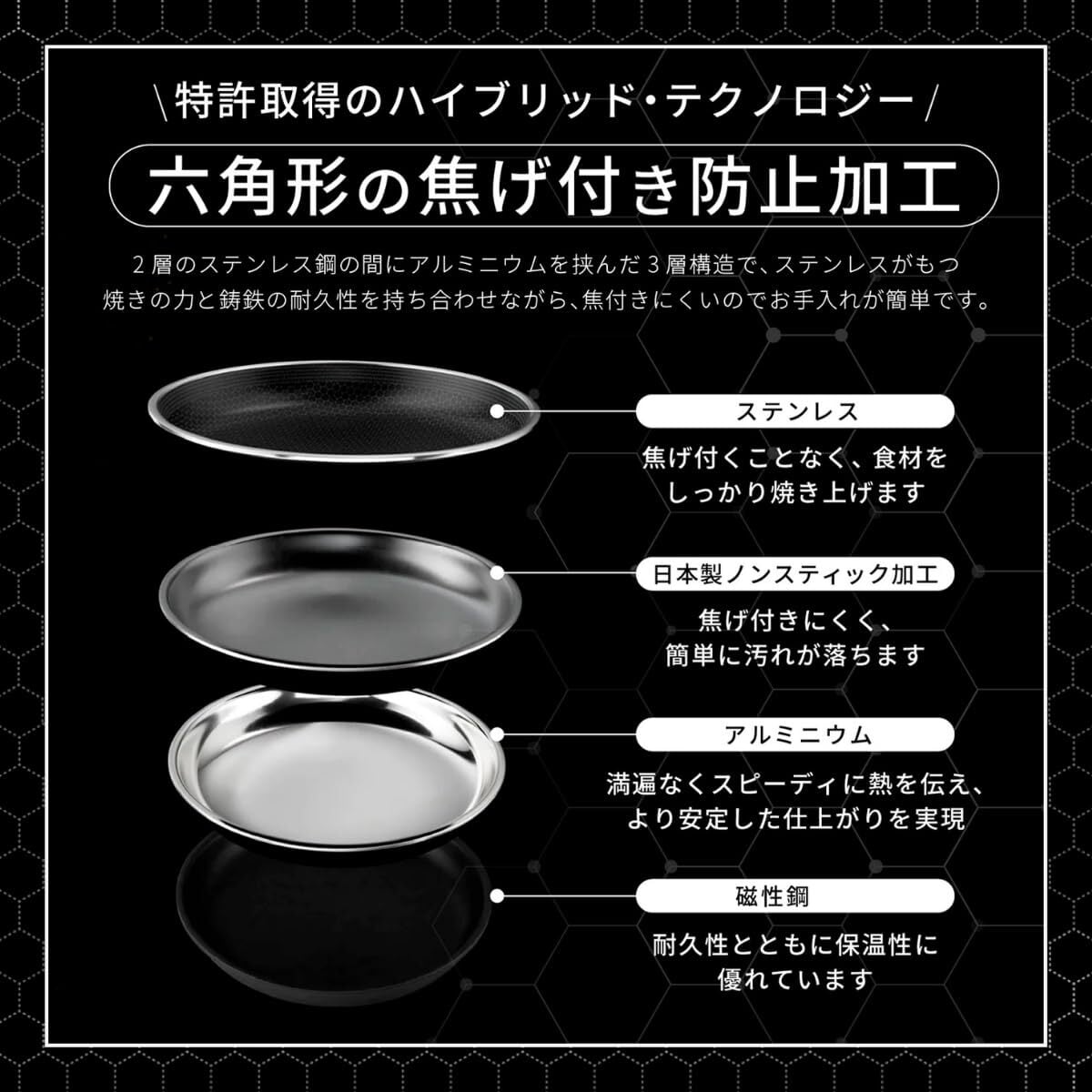 HexClad ハイブリッド フライパン 【30cm】ヘックスクラッド (蓋つき)