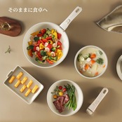 【着脱式専用取っ手】簡単に取り外せる専用取っ手、いろんなシーンに合わせて便利に使えます。取っ手が邪魔にならないため、スペースが限られた場所にも収納できます。調理後は、鍋敷きを置いた食卓に出すことも可能です