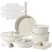 CAROTE カローテ フライパン セット 16点 IH対応 ガス火対応 PFOAなどの有害物質不使用 5層構造 軽量 取っ手のとれる マーブルコート くっつきにくい 鍋セット 卵焼き器 洗いやすい オーブン対応 一年 「アイスクリーム」シリーズ グレージュ