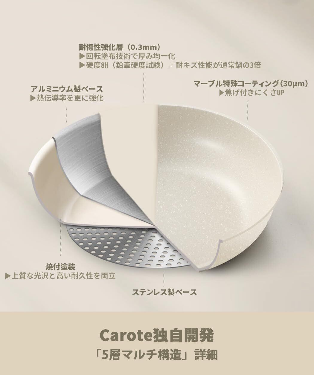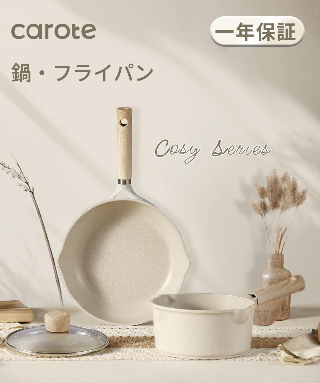 CAROTE カローテ フライパン セット 3点 18cm鍋+24cmフライパン 鍋セット IH&ガス火対応 PFOAなどの有害物質不使用 5層構造 マーブルコート 軽量 1人暮らしセット おしゃれ こびりつかずに お手入れ簡単 Cosyシリーズ 1年 グレージュ