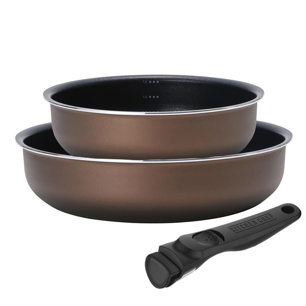 アイリスオーヤマ フライパン セット 3点 IH ガス火 深型 ダイヤモンドコート 目盛付き オーブン調理 着脱式ハンドル PDCI-S3S チェスナットブラウン こびりつかずにお手入れ簡単 ディープラスシリーズ