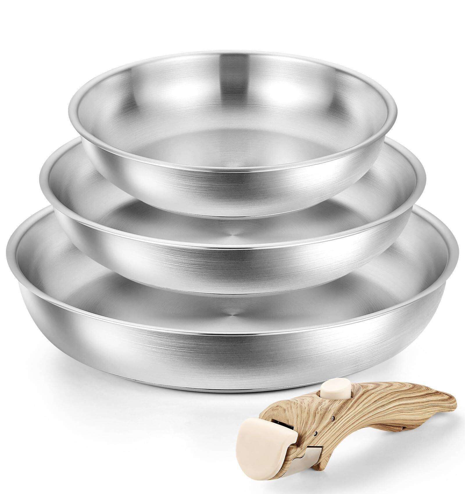 KOCH SYSTEME CS フライパン セット 4点 ステンレス 取っ手のとれる 鍋セット 3層構造 IH·ガス火対応 一人暮らし オーブン対応 お手入れが簡単 一年