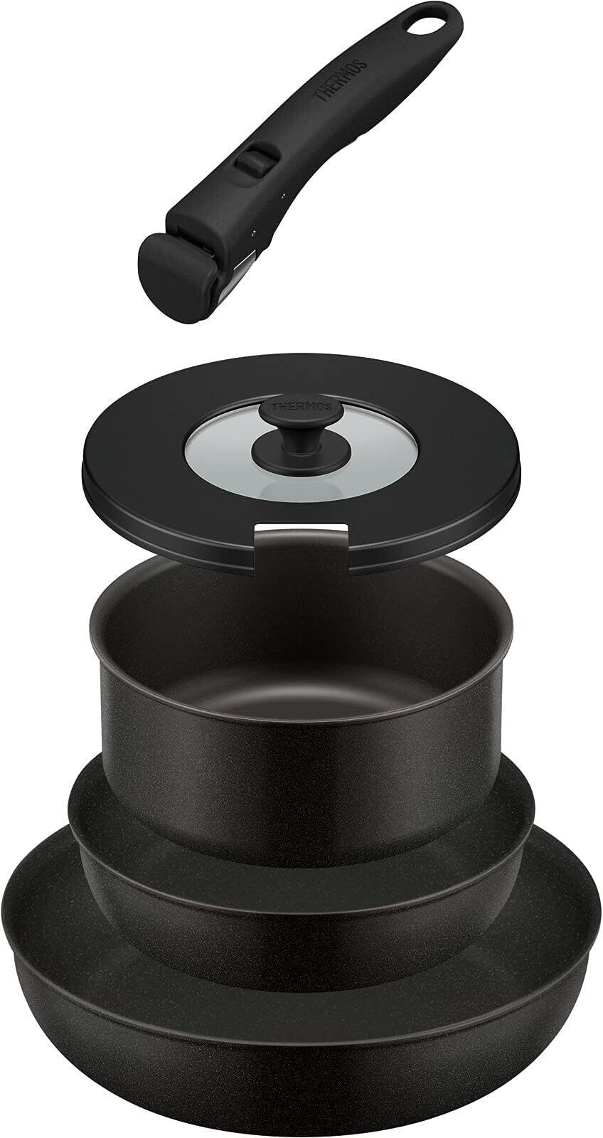 サーモス デュラブルシリーズ 取っ手のとれるフライパン5点セットAB IH対応 ブラック KSA-5B BK