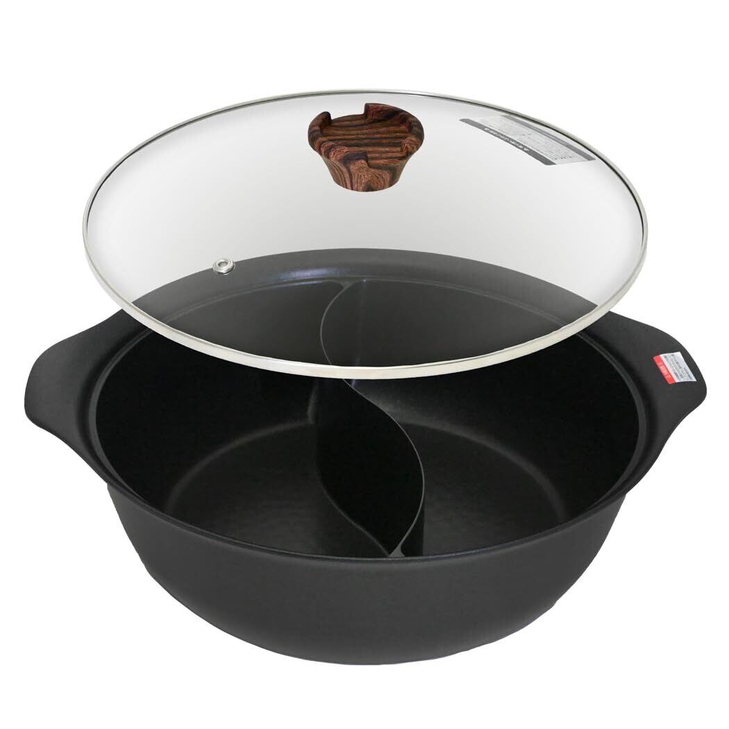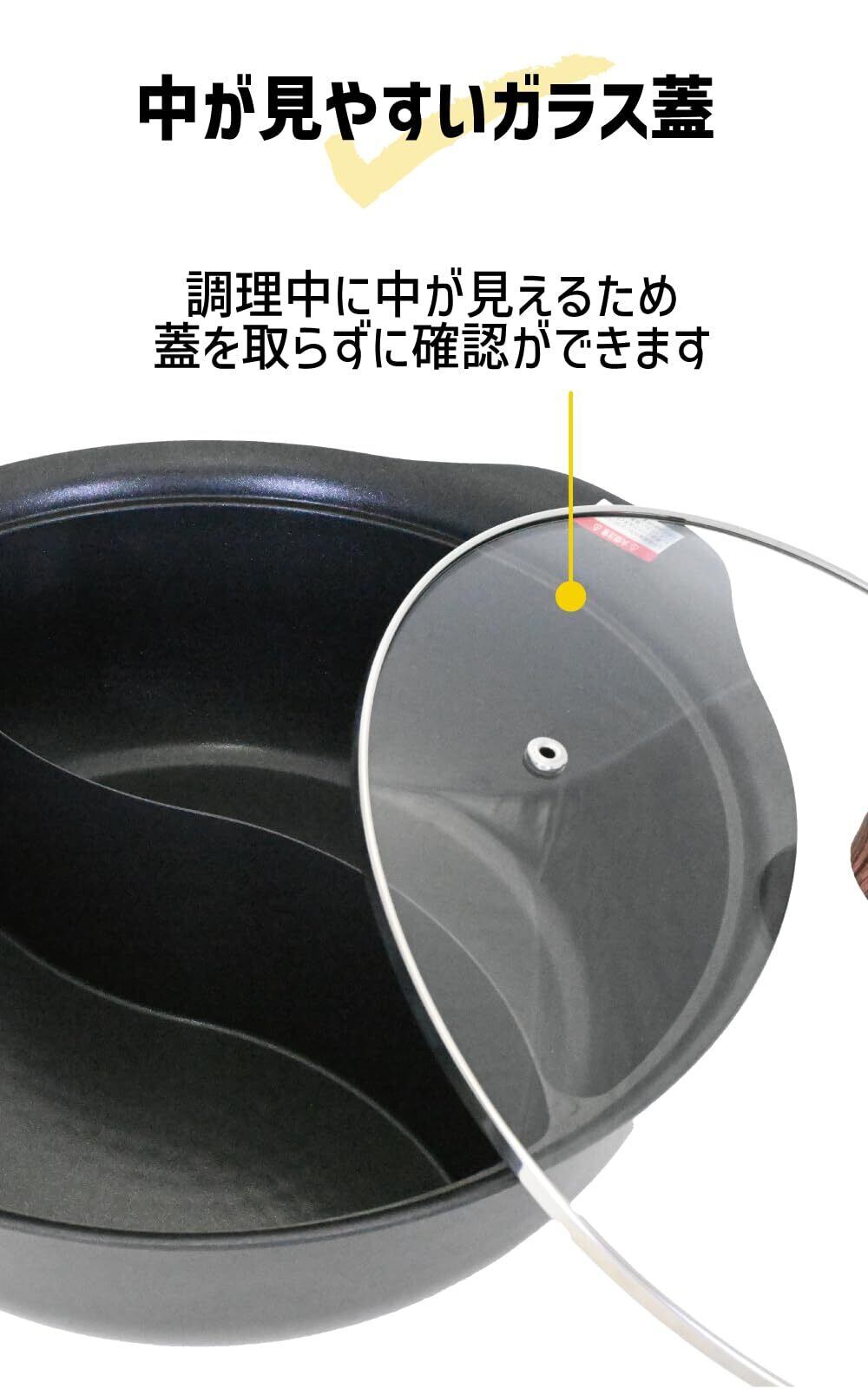 every U. 二色鍋 ハーモニーポット ガラス蓋付 フッ素加工 仕切り付き 卓上鍋 両手鍋 鍋 火鍋 しゃぶしゃぶ 鍋 ih 火鍋 二食鍋 ふっ素加工 IH対応 PFOSフリー (28cm)