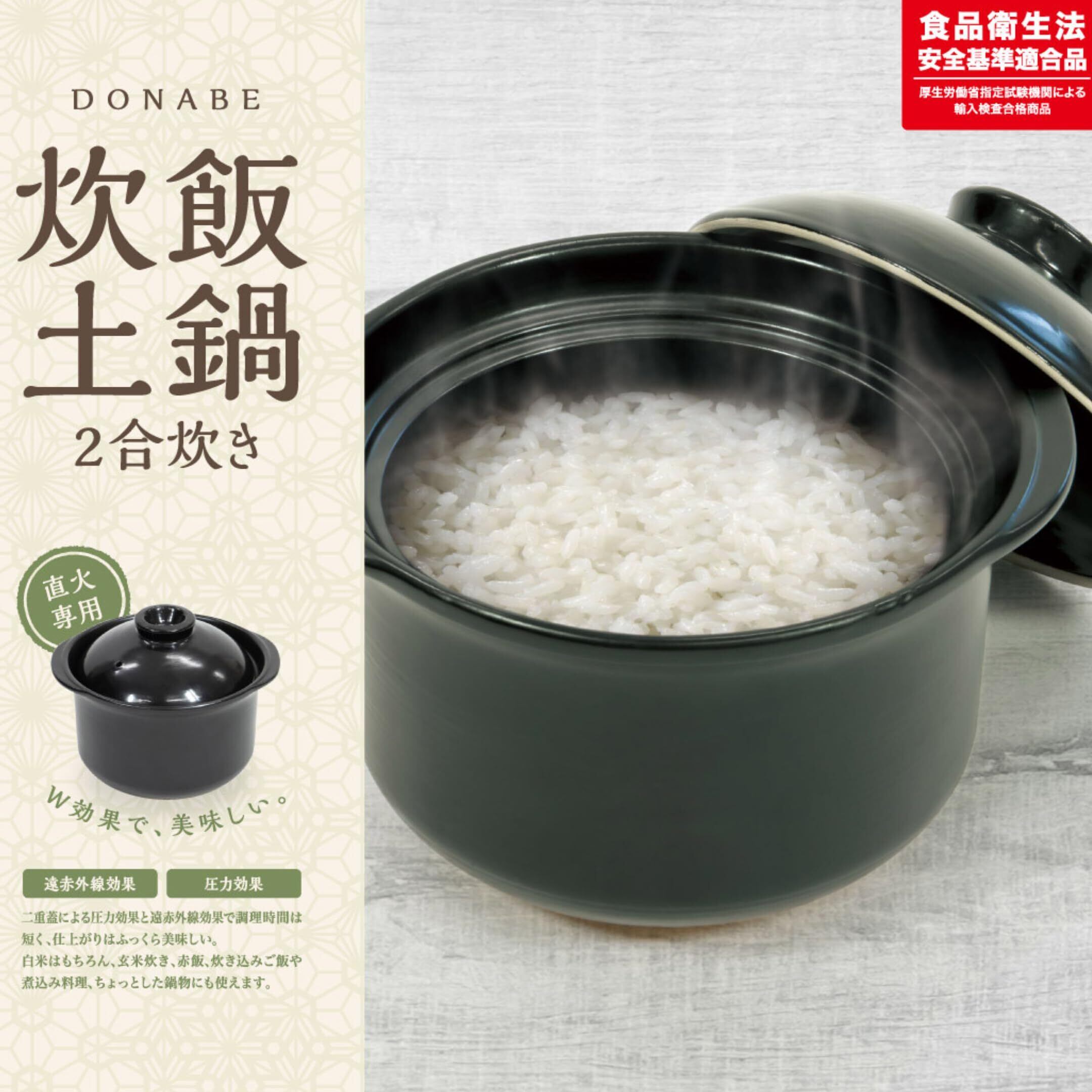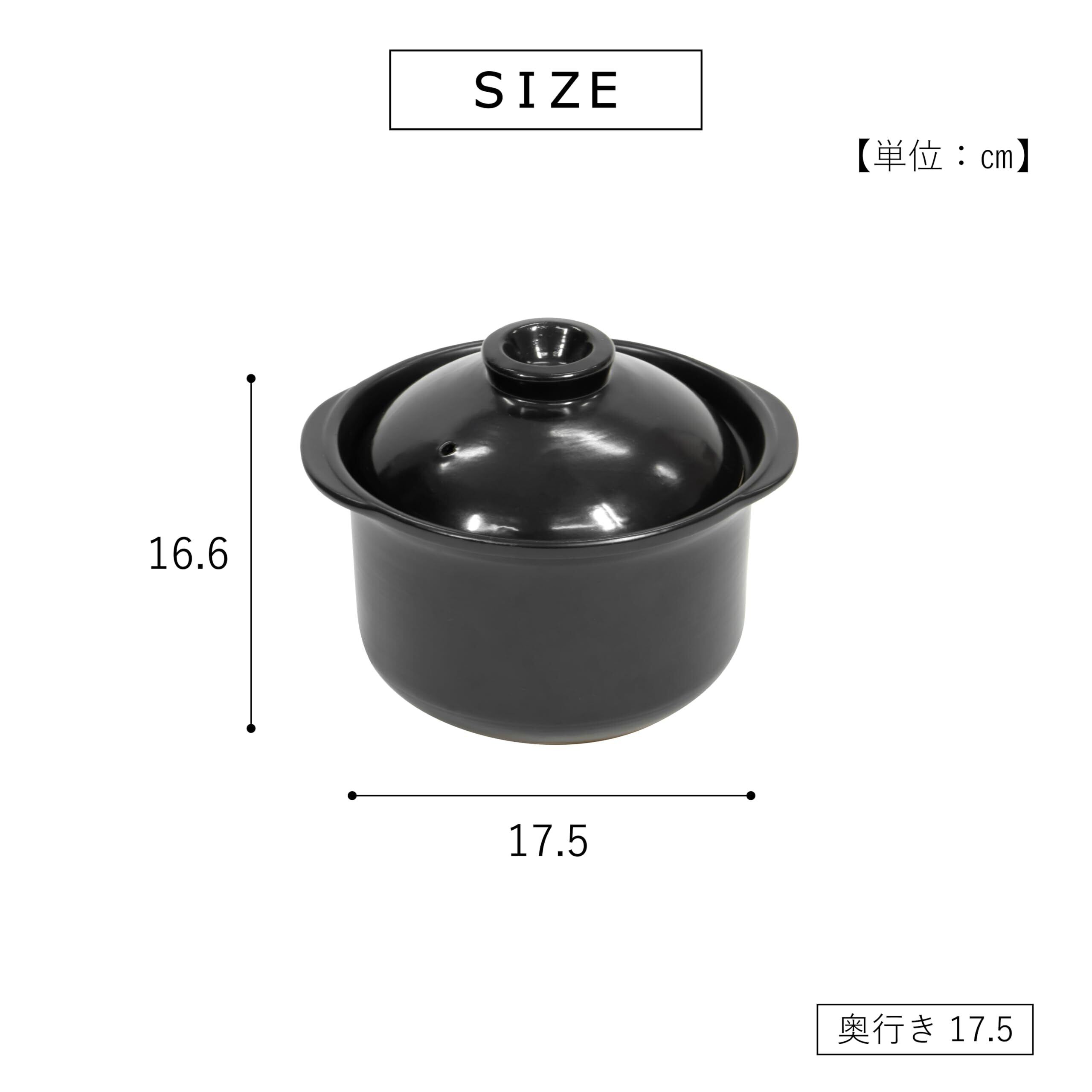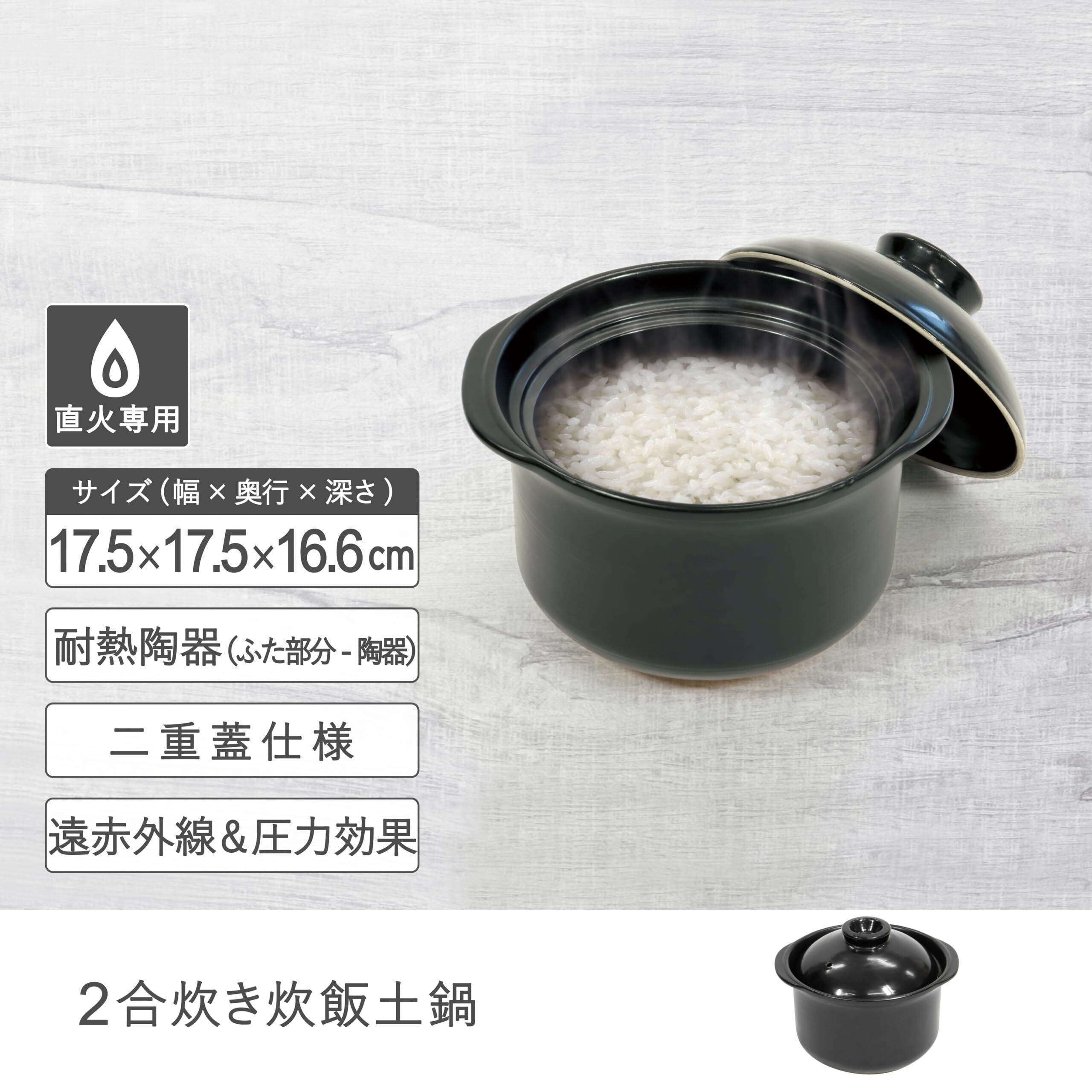 武田コーポレーション【土鍋・お鍋・炊ける】 ブラック 19.8×17.5×17cm 炊飯土鍋2合 SHD2BK
