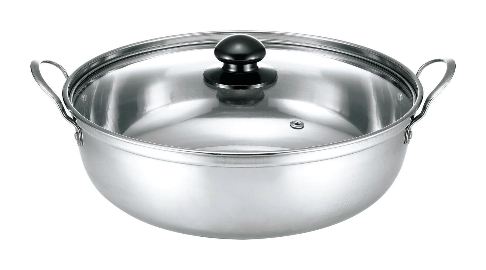 【四季彩】-しきさい- ●軽量タイプで扱いやすい ●お手入れがしやすく、丈夫でサビにくいステンレス製 ●ボリューム満点、大容量サイズ ●大勢で囲めるサイズなのに軽量。 <商品詳細> 本体/ステンレス鋼(クロム13%)(底の厚さ:0.5mm) 取手/ステンレス鋼 フタ/全面物理強化ガラス つまみ/フェノール樹脂