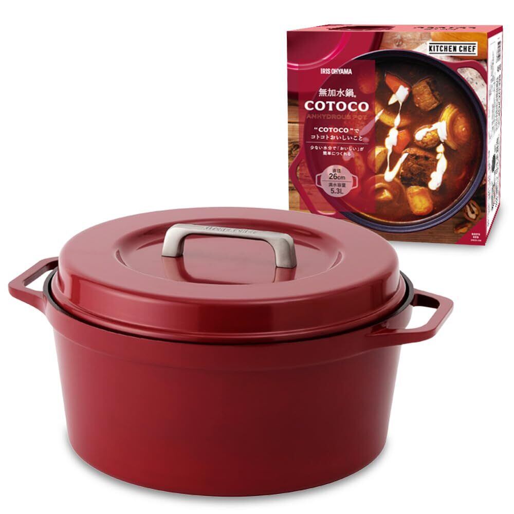 アイリスオーヤマ 鍋 無加水鍋 両手鍋 IH ガス火対応 26㎝ COTOCO 1台6役・時短調理 素材感も味わいも逃さない 軽量 両手鍋 お手入れ簡単 暮らしを彩る無加水鍋 ビーツレッド SMKSN-S26