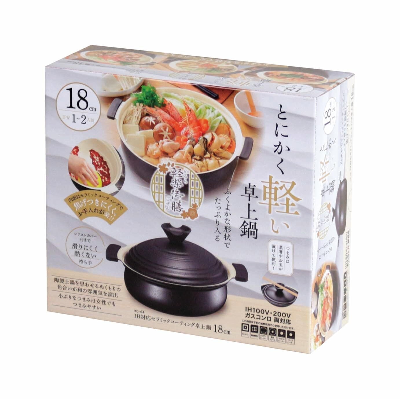 カクセー(Kakusee) 卓上鍋 18cm 1-2人用 両手鍋 ガスコンロ HI対応 焼付塗装 セラミックコーティング 焦げつきにくい たっぷり入る 軽量 和モダンデザイン 軽楽御膳(かるらごぜん) KG-04 ブラック