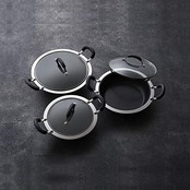 ステーキやムニエルなど大きめのお肉やお魚を焼くのに役立ちます。抜群の熱伝導の良さでお肉もお魚も焼きムラが無くきれいに焼けます。 焦げ付かないので、魚も肉も表面はカリッと中まで上手に火を通すことが出来ます。 濃度の高いタレや焦げ付きやすい醤油の味付けも焦げ付かないからするっとお皿に移せます。 見た目の美しさと高級感に加え、機能性も充実。