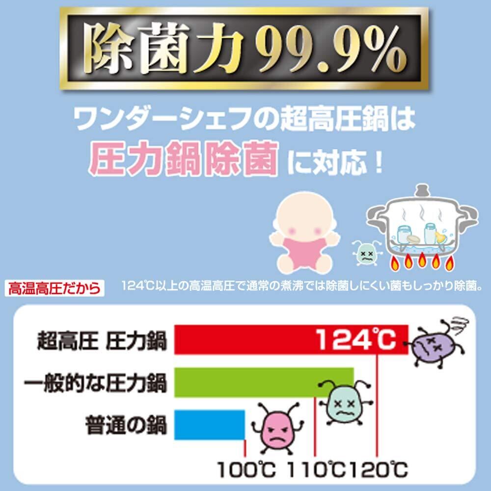 99.9%の除菌力を誇るこの圧力鍋は、料理だけでなく衛生面も考慮されています。スチーム機能を搭載しており、蒸し料理やヘルシーな食事も簡単に楽しむことができます。安心してご使用いただける設計で、健康を気遣う方にも最適です。