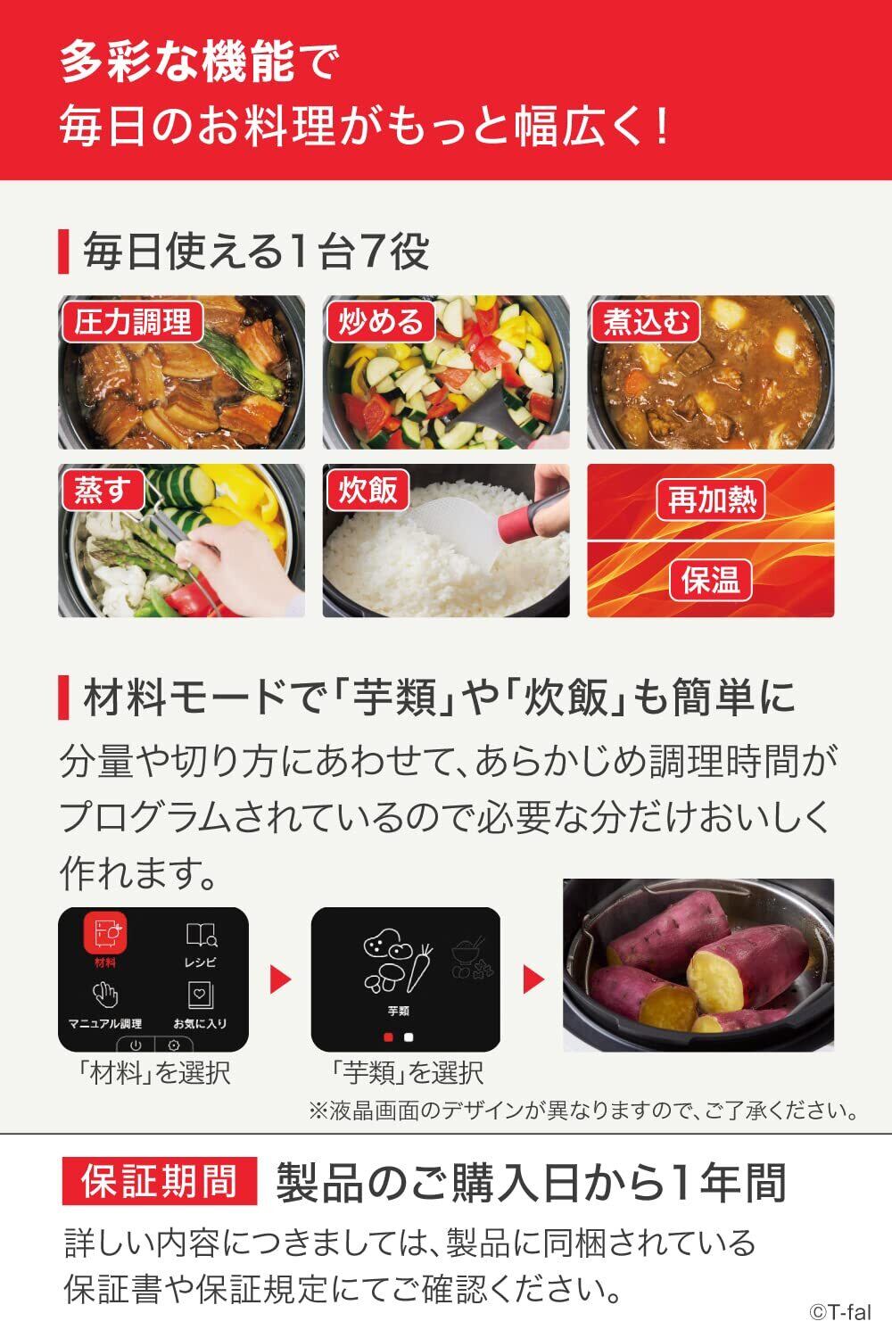 毎日のお料理に使いやすい、1台7役(圧力調理、炒める、煮込む、蒸す、炊飯、保温機能、再加熱機能)