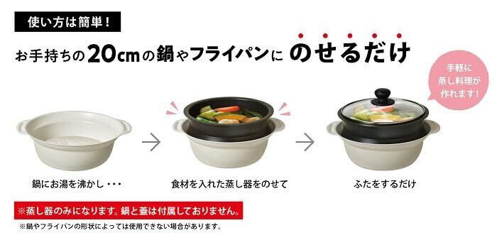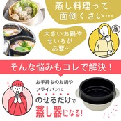 お手持ちの20cmの鍋やフライパンに載せるだけで、簡単に蒸し料理が楽しめます。
