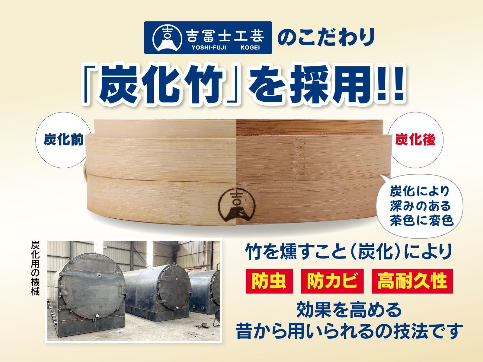 ◆ 吉冨士工芸の台輪は高品質の天然竹を炭化して作られており、炭化竹は竹を高温・高圧で加工し、表面に硬い炭化粒子の層を形成し、ダニの死滅・殺菌効果も得られます!耐久性が高く、殺菌効果も優れています。