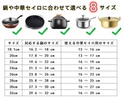 本商品は、サイズ18.1cmから32cmまでの蒸し器に幅広く対応しております。様々なサイズのセイロにもご利用いただけるため、家庭での蒸し料理はもちろん、業務用としても重宝される製品です。