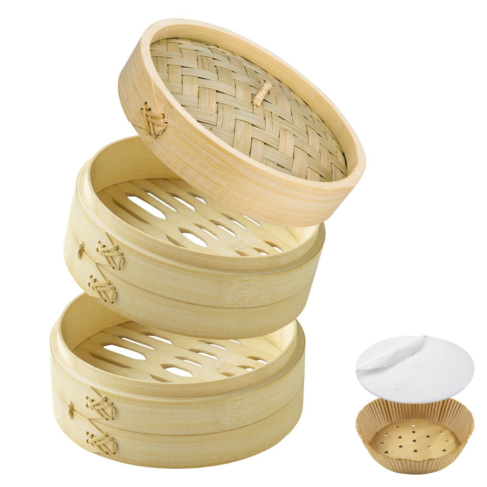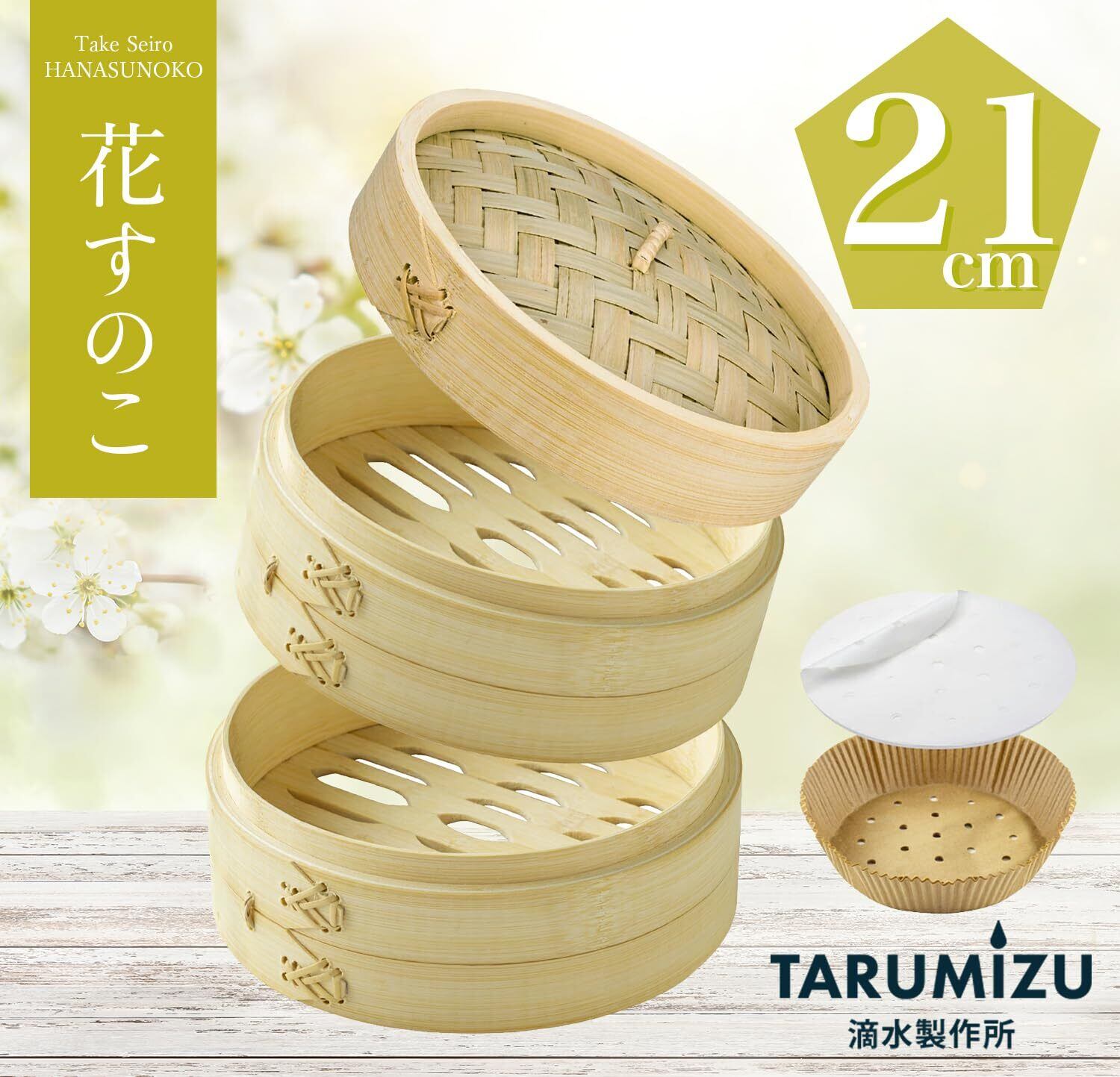 自社独自開発 蒸気の強さUP! 竹蒸篭 花すのこ 21cm セイロ2段 + 蓋 + セイロ専用用紙30枚付( 平面型20枚、タルト型10枚 )【 中 】_ 滴水製作所 TMTS-A-2121 蒸篭 せいろ セイロ 業務用 蒸し器