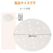 こちらの[せいろ シート]は、蒸し料理をもっと手軽に楽しむための優れたアイテムです。直径19cmのサイズで、21cmの蒸篭にぴったりフィット。100枚入りで、たっぷり使えるのも嬉しいポイントです。
