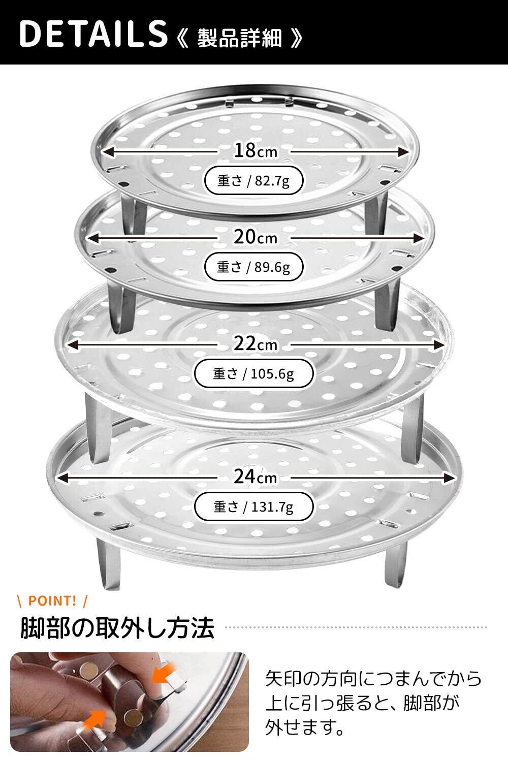[LIFEPUMP] 蒸し板 蒸し器 鍋用 【現役調理師兼フードコーディネーター監修】(ステンレス鋼製) 高さ4.5cm 蒸しプレート (直径18cm)