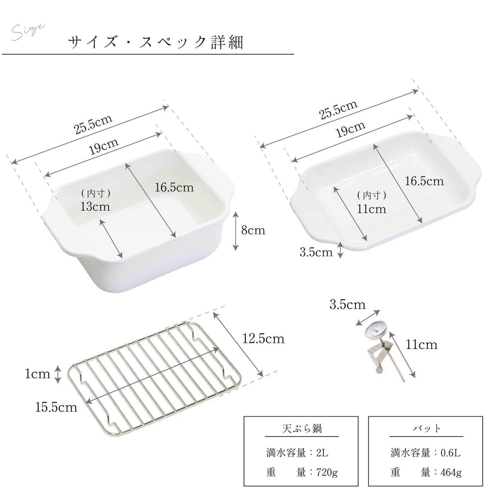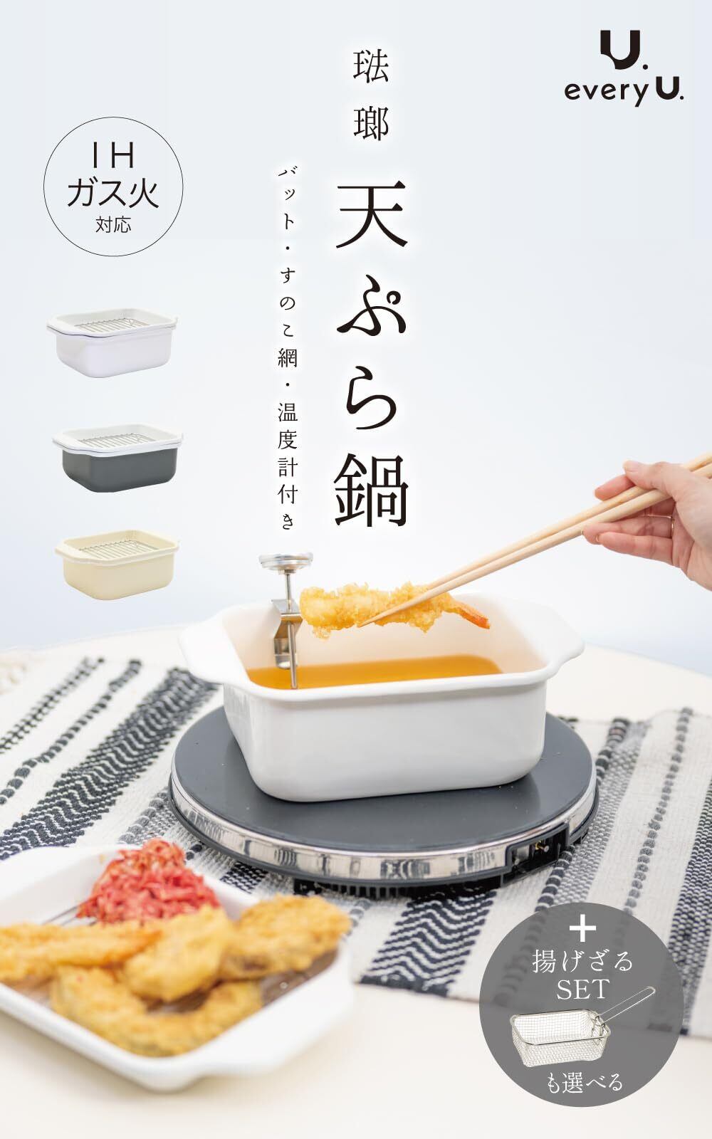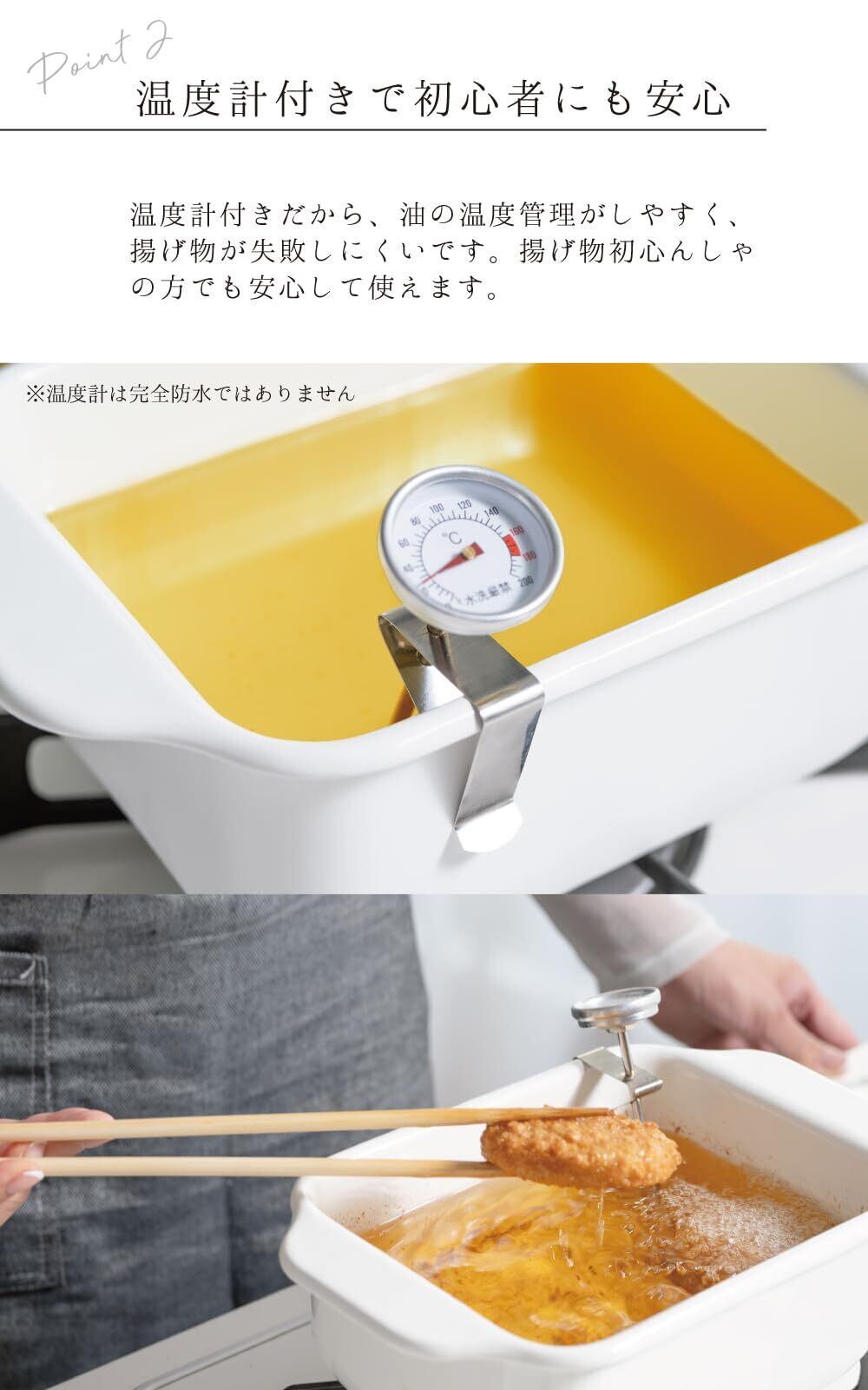 every U. ホーロー 天ぷら鍋 角型 温度計付き バット スノコ付き IHガス火対応 琺瑯 コンパクト 節約 揚げ物鍋 ホーロー鍋 少ない油でOK 省スペース お手入れ簡単【揚げざるセット】
