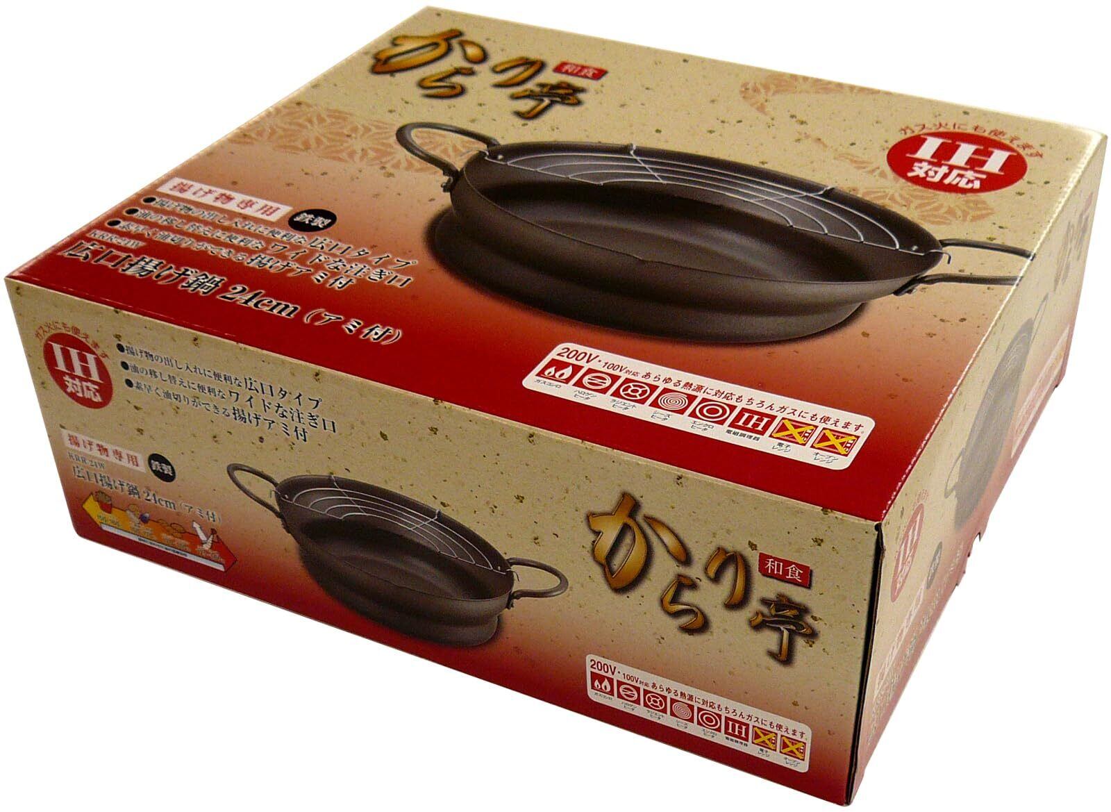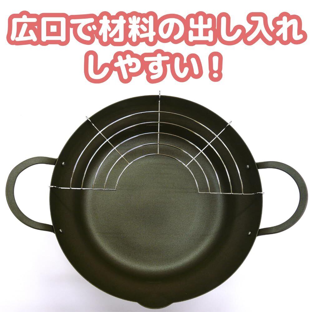 タマハシ(Tamahashi) からり亭 油切りができる 天ぷら鍋 28cm IH ガス火対応 アミ付き 広口タイプ 軽量タイプ アミ付き 日本製 揚げ物 天ぷら 注ぎ口付き 鉄製 KRR-28W