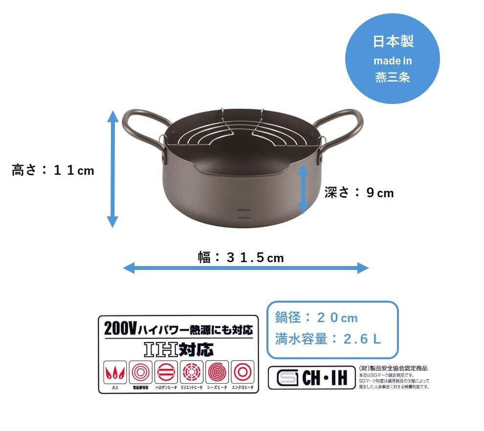 丸山技研 創燕 SOUEN 鉄製 天ぷら鍋 20cm SE-55 IH対応 ガスコンロ対応 揚げ物 揚げ鍋 天婦羅 油鍋 日本製 燕三条